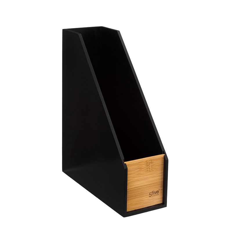 Κουτί αρχειοθέτησης κατασκευασμένο από bamboo και ξύλο MDF σε μαύρο χρώμα με μπεζ λεπτομέρειες. Ιδανικό για να το τοποθετήσετε στα ράφια του γραφείου σας και να οργανώσετε τα έγγραφα σας. Συνδυάστε το με τα υπόλοιπα προϊόντα της ίδιας συλλογής για ένα ολοκληρωμένο αποτέλεσμα.