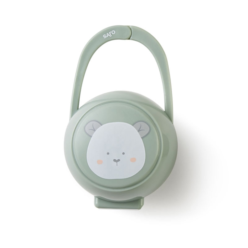 Θήκη πιπίλας σε βεραμάν χρώμα και σχέδιο ζωάκι από την εταιρία Saro. Είναι κατασκευασμένη από πλαστικό. Είναι ιδανική για να σας επιτρέπει να αποθηκεύετε δύο πιπίλες. Η λαβή του σας επιτρέπει να το κρεμάτε από την τσάντα, το καρότσι ή την κούνια μέχρι την επόμενη χρήση. Κατάλληλο για να διατηρούνται οι πιπίλες πάντα καθαρές.
