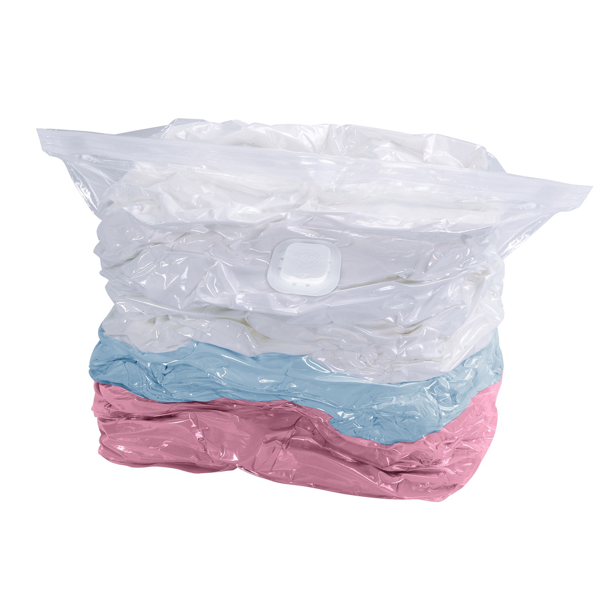 Θήκη φύλαξης από την γερμανική εταιρεία Wenko. Λειτουργεί με το πρακτικό σύστημα αποθήκευσης κενού αέρα εξοικονομώντας έως και 75% χώρο. Είναι ιδανικό για εποχιακά ρούχα ή παπλώματα, καθώς και για μαξιλάρια κήπου ή παιδικό κάθισμα αυτοκινήτου, κλπ. Πολύ εύκολο στην χρήση: τοποθετείτε τα αντικείμενα μέσα στην σακούλα, την κλείνετε και απλώς τραβάτε τον αέρα μέσω της βαλβίδας χρησιμοποιώντας την ηλεκτρική σκούπα. Η σκόνη, η υγρασία και οι σκώροι διατηρούνται μακριά από το περιέχομενο. Προσοχή: Δεν συστήνεται για είδη κατασκευασμένα από μετάξι και δέρμα, καθώς και είδη που περιέχουν πούπουλα ή φτερά.