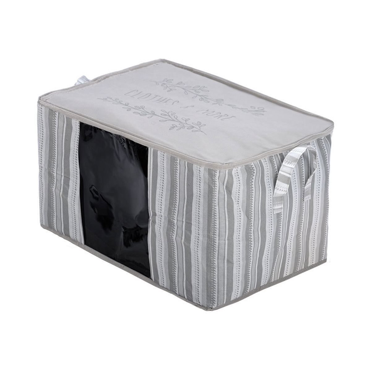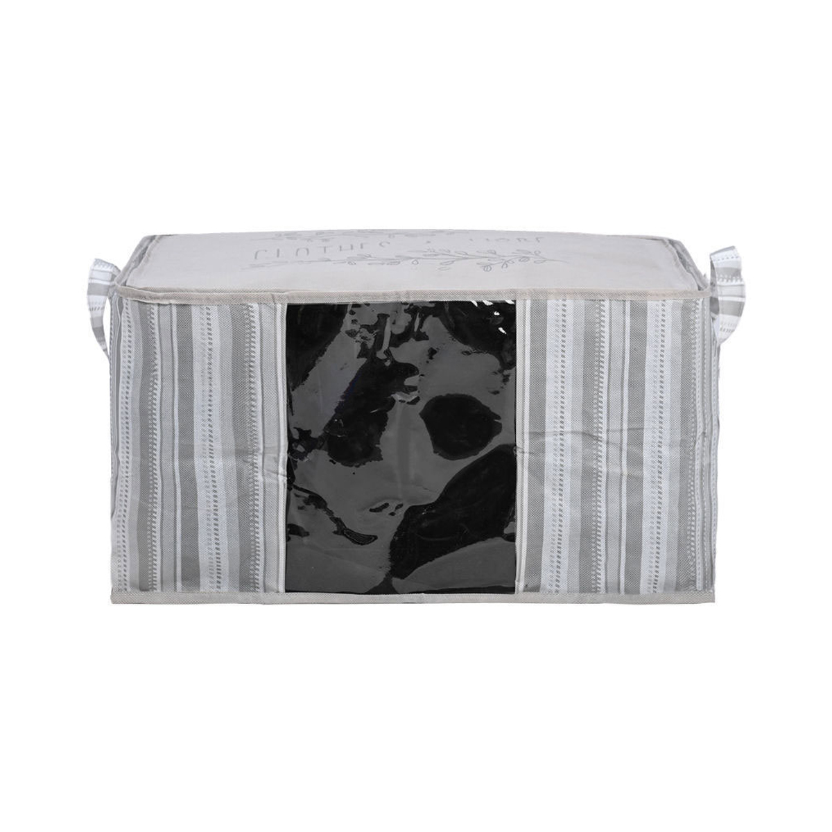 Θήκη φύλαξης από την εταιρεία εstia σε γκρι χρώμα με μοντέρνο σχέδιο. Είναι ιδανική για ρούχα, αξεσουάρ, κουβέρτες, κλπ, και κάνει την αλλαγή χειμωνιάτικων-καλοκαιρινών γρήγορη και κυρίως οργανωμένη. Είναι κατασκευασμένη από polyester και στην πάνω μεριά έχει ανθεκτικό φερμουάρ. Διαθέτει ενισχυμένα λουριά για μεγάλη αντοχή και προσφέρει προστασία από σκόρο, σκόνη και υγρασία.