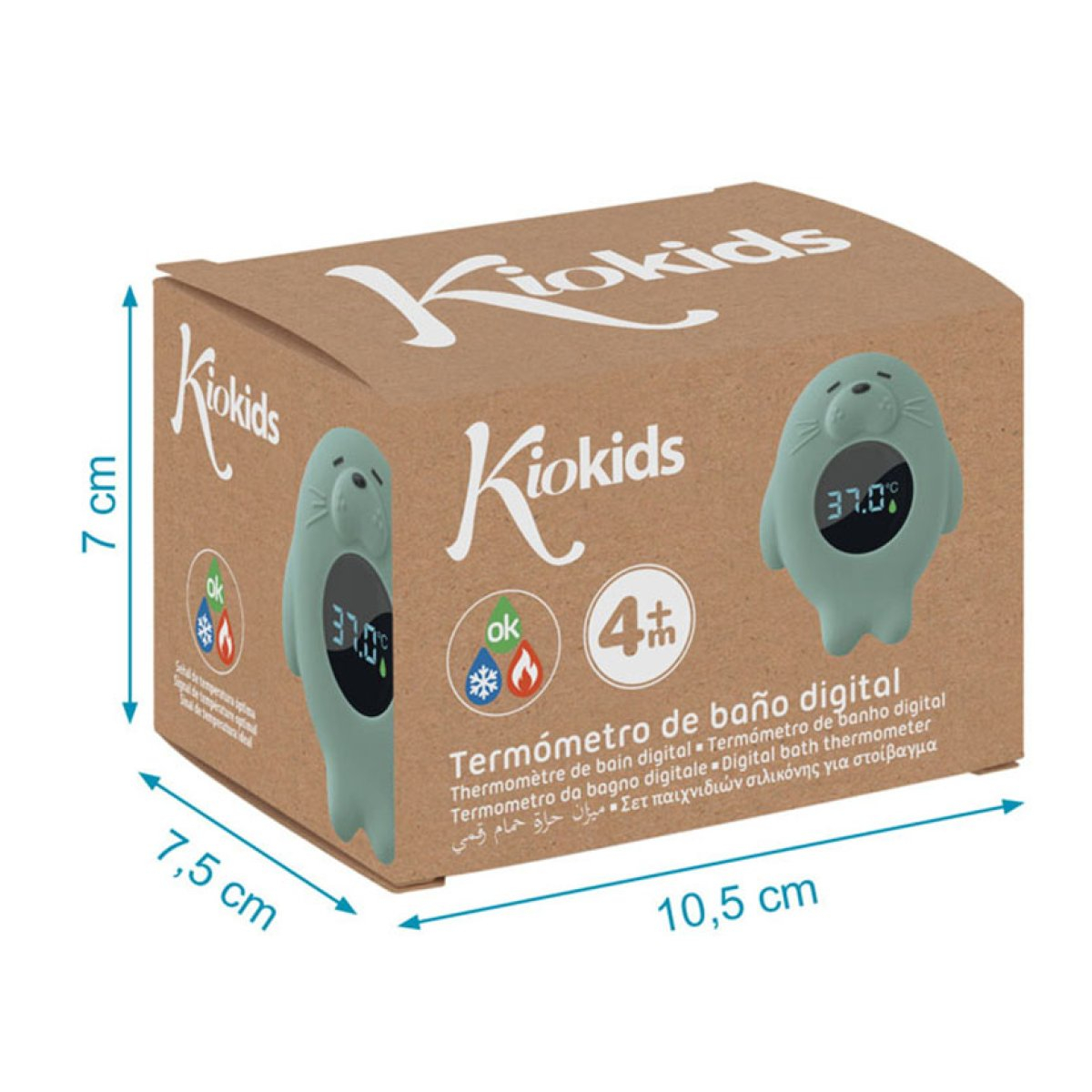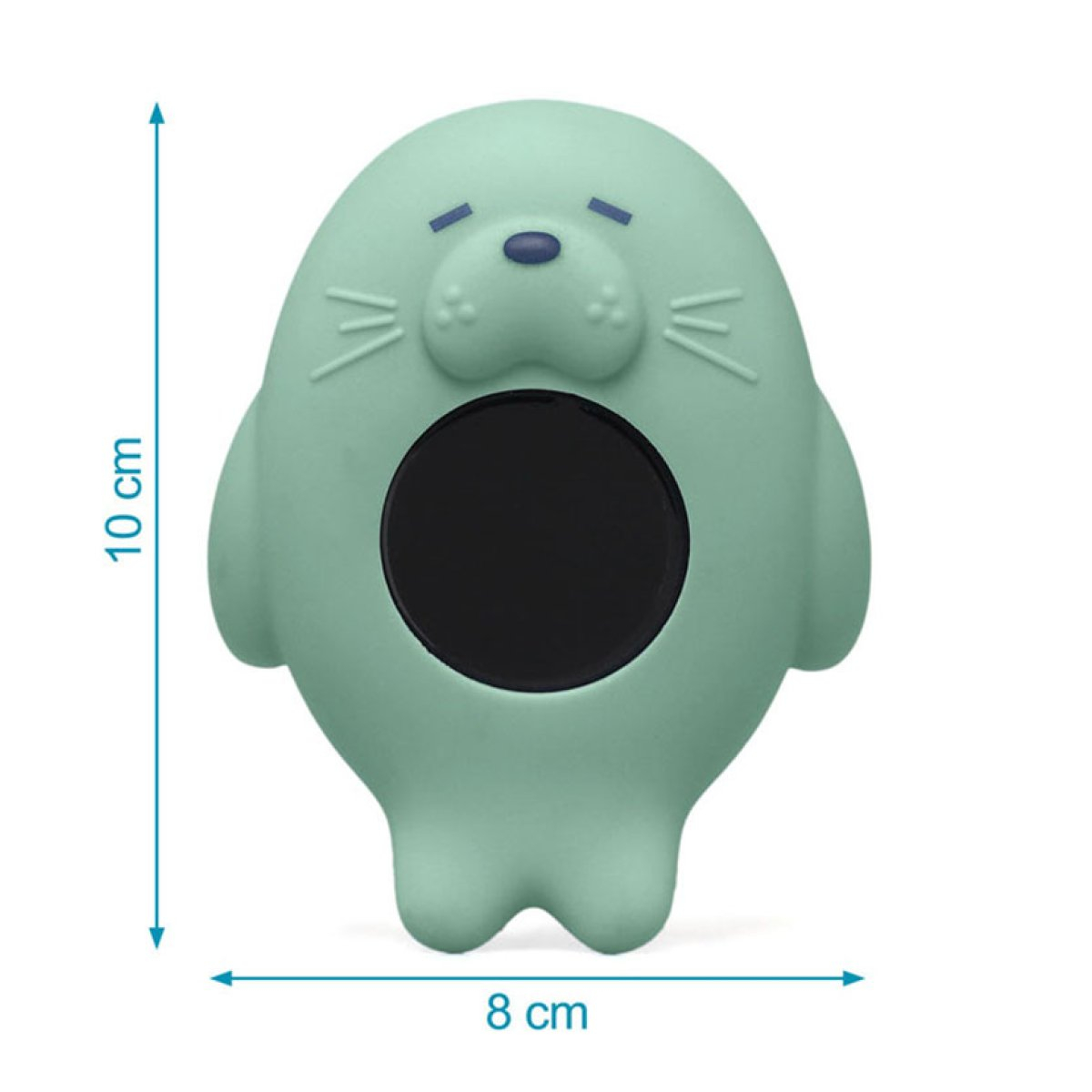 Θερμόμετρο μπάνιου της εταιρείας Kiokids, σε σχήμα φώκιας σε βεραμάν χρώμα. Είναι εύκολο στην ανάγνωση. Είναι κατασκευασμένο από ανθεκτικό βινύλιο. Διαθέτει οθόνη LCD που επιτρέπει τη γρήγορη και καθαρή ανάγνωση της θερμοκρασίας. Απλά βυθίστε το στο νερό και περιμένετε να σταματήσει να κινείται η ένδειξη. Ακριβής μέτρηση θερμοκρασίας νερού. Επιπλέει στο νερό. Χάρη στο συμπαγές μέγεθος και το ελαφρύ του βάρος, είναι εύκολο στον χειρισμό και στη μεταφορά. Ένα πρακτικό αξεσουάρ μπάνιου που χρειάζεται κάθε μαμά για να μπορεί να μετρήσει με ακρίβεια τη θερμοκρασία του νερού για το μπάνιο του μικρού της. Περιλαμβάνονται 2 μπαταρίες κουμπιά (AG13 - LR44 1.5V), καθώς και δύο επιπλέον ανταλλακτικές.