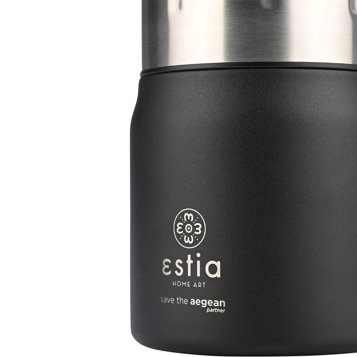 Θερμός φαγητού χωρητικότητας 500ml από την εταιρεία εstia σε μαύρο χρώμα. Είναι μέρος της συλλογής "Save The Aegean". Η εταιρεία εstia συνεισφέρει στον οργανισμό "Save The Aegean" με 1% επί των πωλήσεων, για καθαρότερες θάλασσες και ένα καλύτερο αύριο.Είναι κατασκευασμένο από ανοξείδωτο ατσάλι 18/8 που ανταποκρίνεται σε υψηλές απαιτήσεις, εγγυάται μεγαλύτερη αντοχή στη μακροχρόνια χρήση και 100% αναλλοίωτη γεύση. Το προϊόν είναι απαλλαγμένο από ουσίες BPA και είναι ασφαλές για επαφή με τρόφιμα και υγρά. H ενισχυμένη μόνωση διπλού τοιχώματος διατηρεί κρύο έως 12 ώρες και ζεστό έως 6 ώρες το φαγητό. Παράλληλα διαθέτει ανοξείδωτο αναδιπλούμενο κουτάλι και δύο καπάκια, που εξασφαλίζουν 100% στεγανότητα. Το εξωτερικό ανοξείδωτο καπάκι του μπορεί να χρησιμοποιηθεί για σερβίρισμα. Το χρώμα τοποθετείται μέσω της τεχνικής powder coating, η οποία προσφέρει ένα ματ αποτέλεσμα και μεγάλη αντοχή στην μακροχρόνια χρήση. Ιδανικό για την βόλτα, το ταξίδι, το γραφείο. Το λογότυπο είναι χαραγμένο πάνω στο προϊόν. Η συσκευασία του είναι κατασκευασμένη από 100% ανακυκλώσιμα υλικά και μπορεί να χρησιμοποιηθεί για πολλαπλές χρήσεις.