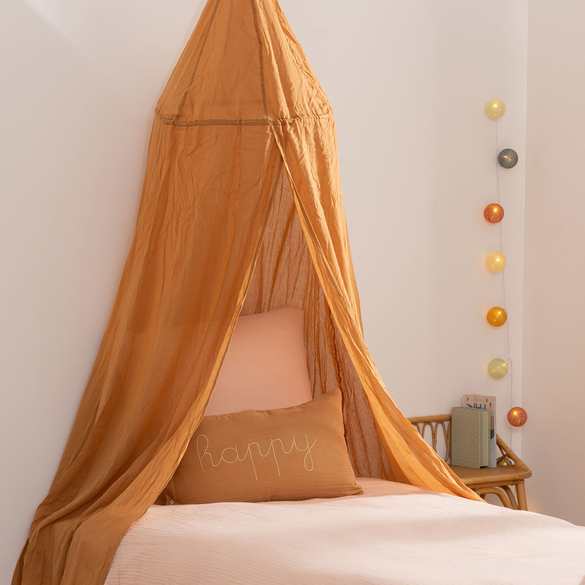 Διακοσμητικός θόλος κρεμαστός στο χρώμα της τερακότας. Το μαλακό ύφασμά του από 100% βαμβάκι επιτρέπει στον αέρα να περνάει και ταυτόχρονα προστατεύει από τα κουνούπια. Τοποθετείται στην οροφή για να δημιουργήσετε έναν ασφαλή και όμορφο χώρο παιχνιδιού ή πάνω από την κούνια του μωρού για να το προστατέψετε από τα έντομα. Τοποθετήστε την κουνουπιέρα πάνω από ένα μαλακό χαλάκι παιχνιδιού ή χαλί για να μετατραπεί σε μια μαγική σκηνή παιχνιδιού.