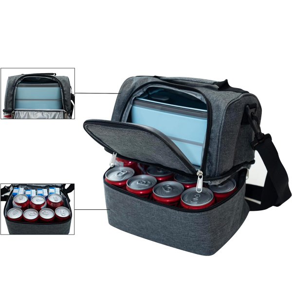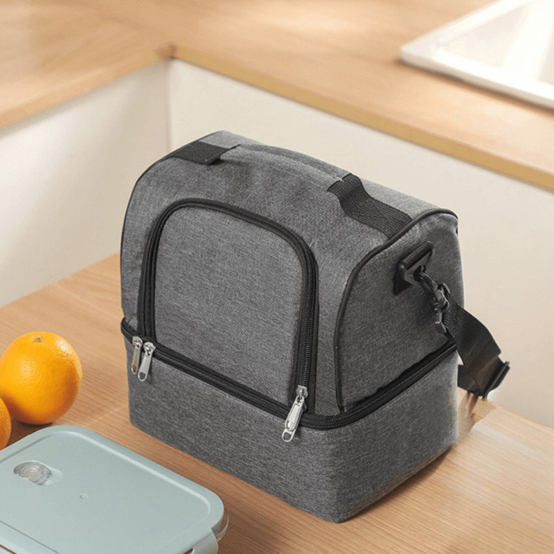 Ισοθερμική τσάντα φαγητού χωρητικότητας 10 λίτρων από την εταιρεία Amber σε γκρι χρώμα. Είναι κατασκευασμένη εξωτερικά από πολυεστερικό ύφασμα oxford. Το εσωτερικό της είναι κατασκευασμένο από ειδικό θερμομονωτικό υλικό. Έχει δύο μεγάλες θήκες που κλείνουν με φερμουάρ. Διαθέτει λαβή και ρυθμιζόμενο ιμάντα για εύκολη μεταφορά. Ιδανική τσάντα για την παραλία και τις εκδρομές σας.
