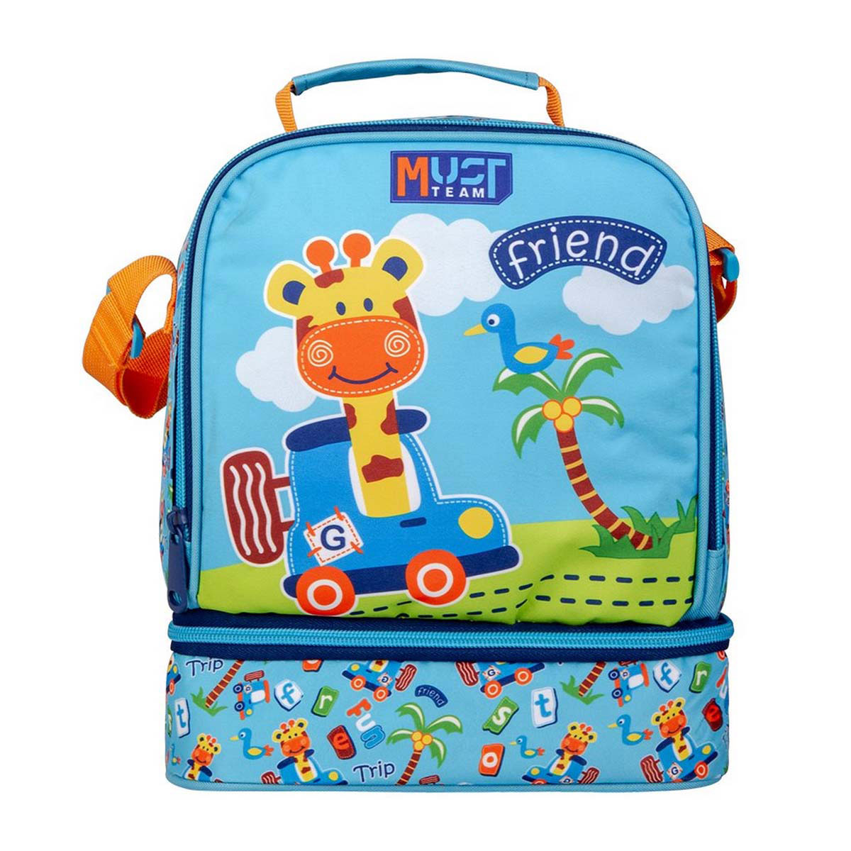 Τσάντα φαγητού πολύχρωμη με σχέδιο ζωάκια από την εταιρεία Must. Είναι κατασκευασμένη από 100% πολυεστέρα. Διαθέτει 2 ευρύχωρες θήκες, 1 μεγάλη κεντρική θήκη και 1 μικρότερου μεγέθους στο κάτω μέρος. Έχει εσωτερική ισοθερμική επένδυση για να διατηρεί τη φρεσκάδα, τη νοστιμιά και τη σταθερή θερμοκρασία όλων των γευμάτων κάθε στιγμή. Η ενισχυμένη λαβή της, ο ρυθμιζόμενος ιμάντας ώμου μεταφοράς και το λουράκι εξασφαλίζουν την ξεκούραστη μεταφορά του φαγητού σας. Επίσης, έχει ελαστικό ιμάντα για τη στήριξη του παγουριού και ετικέτα στοιχείων. Ιδανική τσάντα μεταφοράς φαγητού στο σχολείο, στις βόλτες και στις εκδρομές. Χωριτικότητα 7 λίτρα.