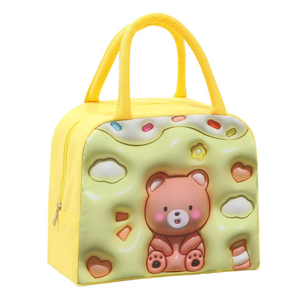 Ισοθερμική τσάντα φαγητού χωρητικότητας 5.5 λίτρων από την εταιρεία Amber σε κίτρινο χρώμα με σχέδιο αρκουδάκι. Είναι κατασκευασμένη εξωτερικά από πολυεστερικό ύφασμα oxford. Το εσωτερικό της είναι κατασκευασμένο από ειδικό θερμομονωτικό υλικό. Έχει μία ενιαία κεντρική θήκη που κλείνει με φερμουάρ. Έχει λαβή μεταφοράς για να μεταφέρετε εύκολα. Ιδανική τσάντα μεταφοράς φαγητού στο σχολείο, στις βόλτες και στις εκδρομές.