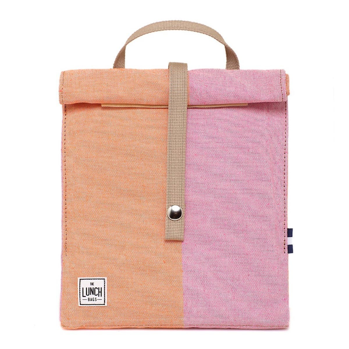 Ισοθερμική τσάντα φαγητού σε πορτοκαλί-ροζ, μοντέρνο σχέδιο και μπεζ χερούλι από την εταιρία The Lunch Bags. Το εξωτερικό της ύφασμα είναι κατασκευασμένο από 100% βαμβάκι ενώ εσωτερικά διαθέτει ισοθερμικό μηχανισμό Hot&Cold© για να διατηρεί την θερμοκρασία του γεύματός σας αμετάβλητη για πολλές ώρες. Κλείνει με ταινία velcro και κόπιτσα. Έχει χωρητικότητα 5 λίτρων, κατάλληλη για φαγητό ενός ατόμου. Ιδανική τσάντα για να διατηρείτε το φαγητό σας κρύο ή ζεστό, στην δουλειά, στην βόλτα ή οπουδήποτε αλλού επιθυμείτε. Όλα τα προϊόντα της ελληνικής εταιρίας The Lunch Bags, είναι χειροποίητα και κατασκευασμένα από βαμβάκι με γνώμονα τον σεβασμό προς το περιβάλλον και προσφέροντας μια ευρεία γκάμα σχεδίων και χρωμάτων για όλες τις ανάγκες.