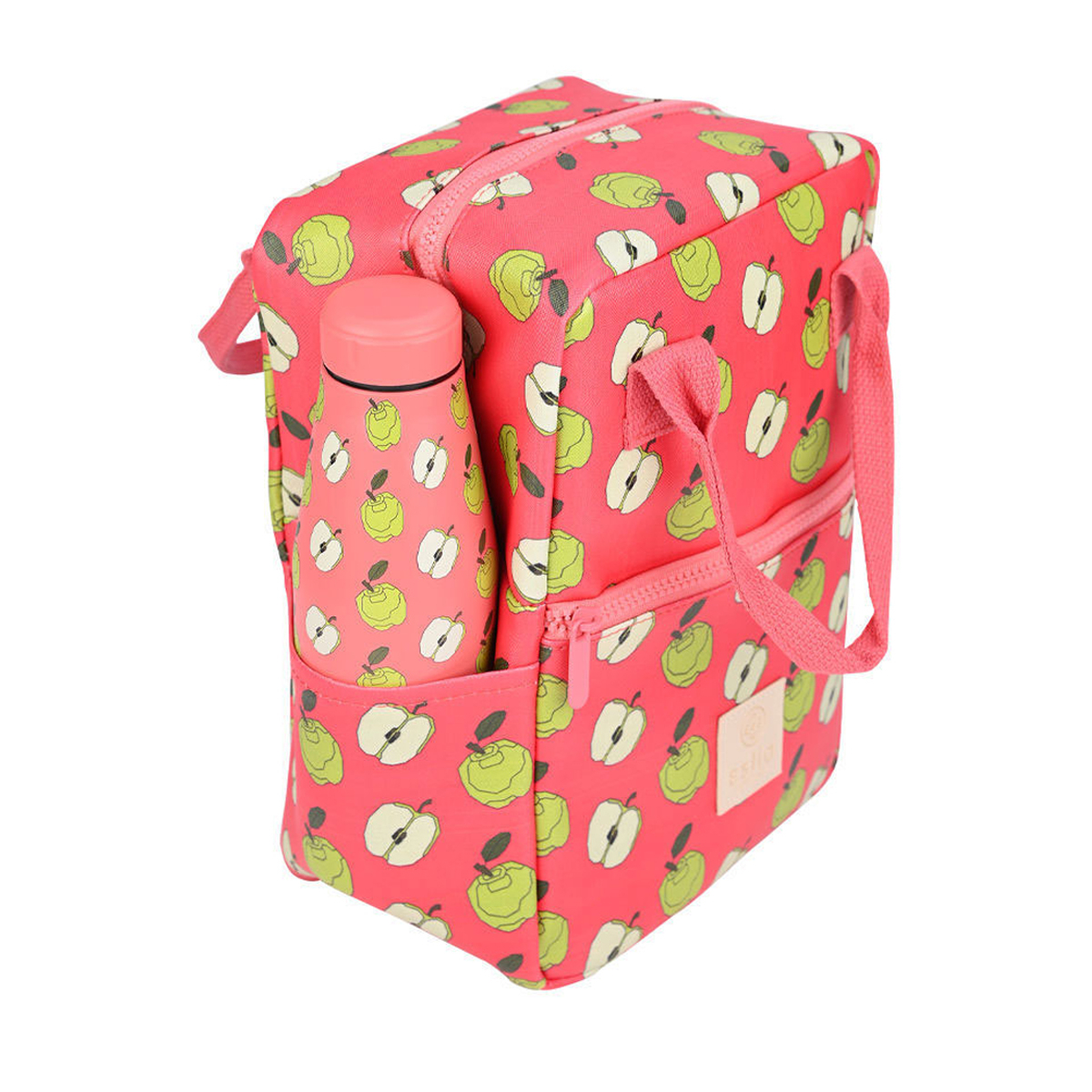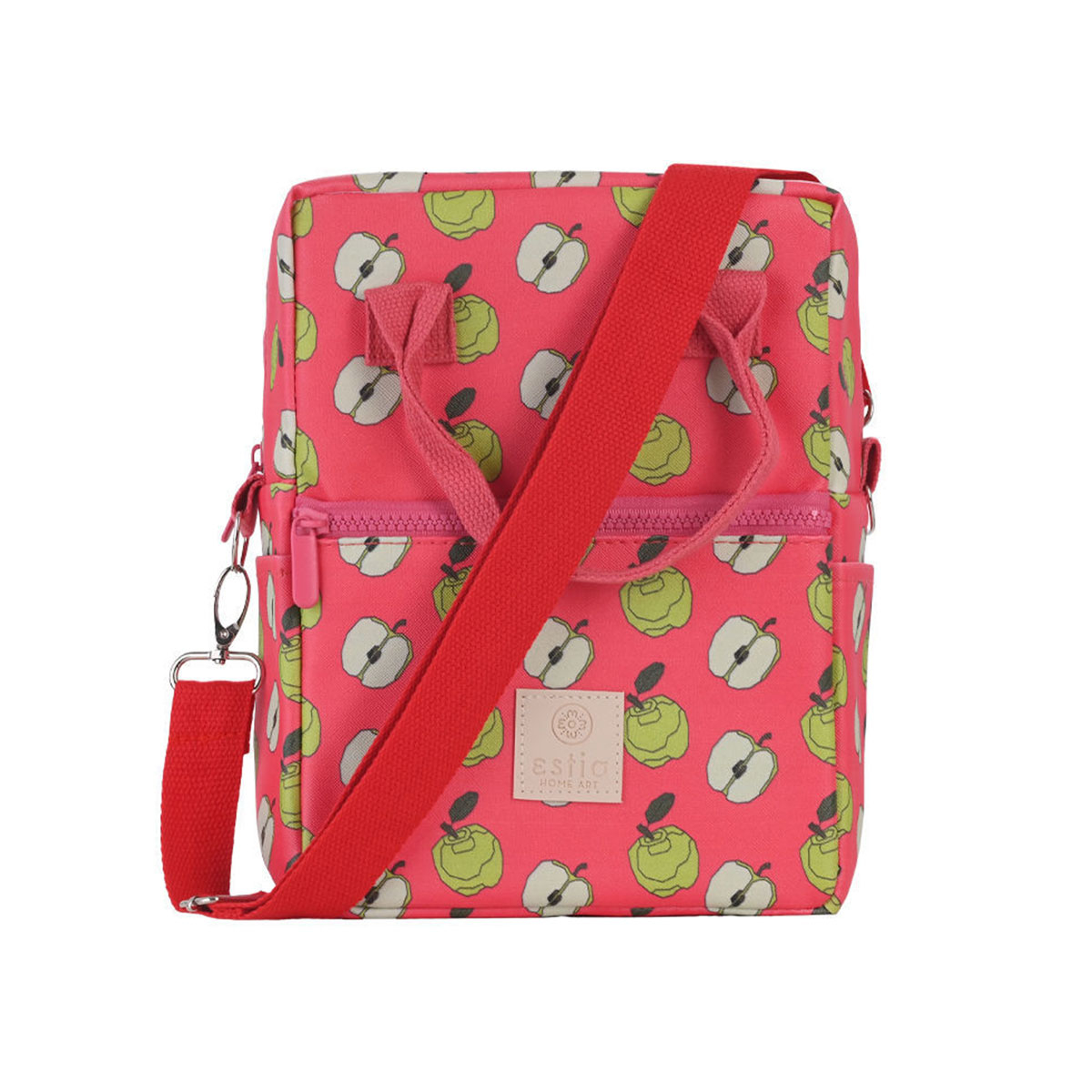 Ισοθερμική τσάντα φαγητού από την εταιρεία εstia σε κοραλί χρώμα με μήλα στο σχέδιο. Είναι μέρος της συλλογής "Save The Aegean". Η εταιρεία εstia συνεισφέρει στον οργανισμό "Save The Aegean" με 1% επί των πωλήσεων, για καθαρότερες θάλασσες και ένα καλύτερο αύριο. Η εξωτερική επιφάνεια της τσάντας είναι κατασκευασμένη από PVC leather, ένα ανθεκτικό συνθετικό υλικό που προσφέρει κομψή εμφάνιση και μεγάλη διάρκεια ζωής. Το υφασμα αυτό προσομοιώνει την εμφάνιση και υφή του φυσικού δέρματος, αλλά είναι κατασκευασμένο από PVC, ένα είδος πλαστικού. Διαθέτει μία με ισοθερμική επένδυση που κλείνει με φερμουάρ. Θήκη για μπουκάλι ή θερμός εσωτερικά και εξωτερικά. Επίσης, έχει μια μπροστινή τσέπη με φερμουάρ για μικροαντικείμενα. Η άνετη λαβή της είναι πολύ πρακτική για μεταφορά. Στα πλαϊνά διαθέτει θηλιές για να βάλετε το λουρί και να μπορείτε να την κρεμάτε είτε από τον ώμο είτε χιαστί. Ιδανική για το γραφείο, το σχολείο και οποιαδήποτε άλλη δραστηριότητα. Συνδυάστε το με το λουράκι τσάντας Olympiacos Basketball Edition για ένα ολοκληρωμένο αποτέλεσμα. *Το λουρί πωλείται ξεχωριστά.*