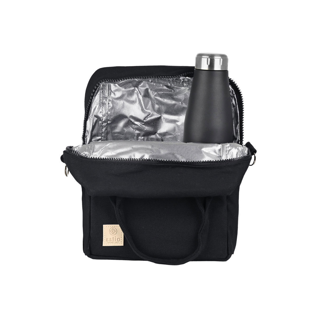 Ισοθερμική τσάντα φαγητού σε μαύρο χρώμα από την εταιρεία εstia από την σειρά "Save The Aegean". Η εταιρεία εstia συνεισφέρει στον οργανισμό "Save The Aegean" με 1% επί των πωλήσεων, για καθαρότερες θάλασσες και ένα καλύτερο αύριο. Εξωτερικά έχει ανθεκτικό ύφασμα από 100% βαμβάκι και εσωτερικά έχει ισοθερμική επένδυση που διατηρεί την θερμοκρασία του φαγητού ή του ποτού σας για περισσότερη ώρα. Διαθέτει 2 θέσεις για μπουκάλια, μία στην κύρια θήκη και μία εξωτερικά για να μένει το περιεχόμενο του μπουκαλιού σας στην κατάλληλη θερμοκρασία. Κλείνει με φερμουάρ και μεταφέρεται εύκολα χάρη στις πρακτικές λαβές της. Με εξωτερική θήκη που κλείνει με φερμουάρ για να τοποθετήσετε τα κλειδιά, το κινητό ή ότι άλλο χρειάζεστε. Διαθέτει κρίκους στο πλάι για να μπορέσετε να τοποθετήσετε λουράκι μεταφοράς. Ιδανική για το γραφείο, το σχολείο και οποιαδήποτε άλλη δραστηριότητα. Χωρητικότητα: 7lt.