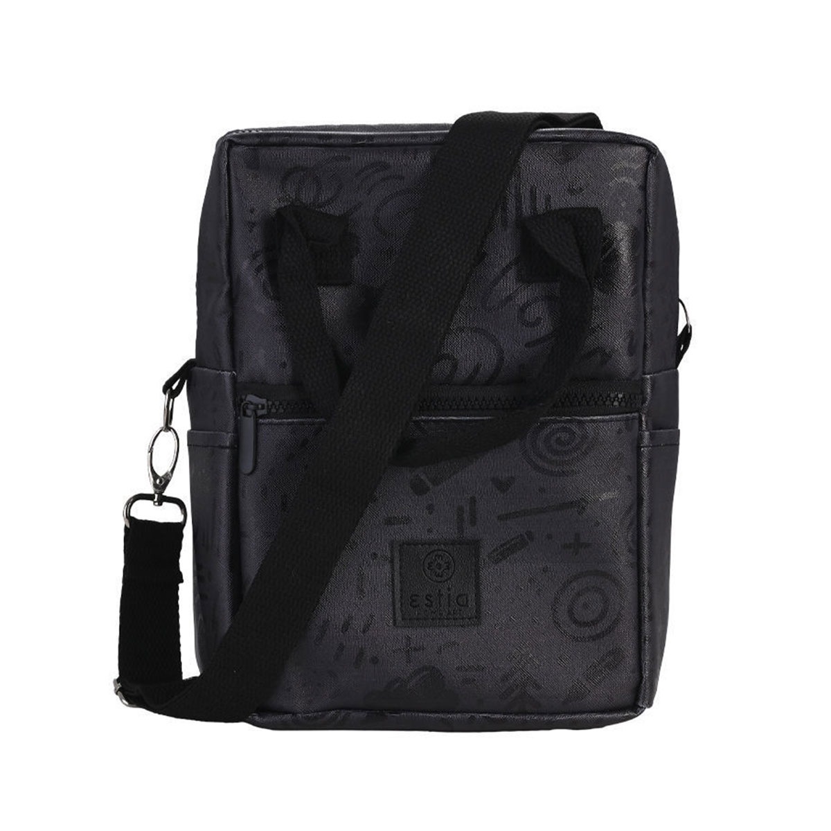 Ισοθερμική τσάντα φαγητού από την εταιρεία εstia σε μαύρο χρώμα με μοντέρνο σχέδιο. Είναι μέρος της συλλογής "Save The Aegean". Η εταιρεία εstia συνεισφέρει στον οργανισμό "Save The Aegean" με 1% επί των πωλήσεων, για καθαρότερες θάλασσες και ένα καλύτερο αύριο. Η εξωτερική επιφάνεια της τσάντας είναι κατασκευασμένη από PVC leather, ένα ανθεκτικό συνθετικό υλικό που προσφέρει κομψή εμφάνιση και μεγάλη διάρκεια ζωής. Το υφασμα αυτό προσομοιώνει την εμφάνιση και υφή του φυσικού δέρματος, αλλά είναι κατασκευασμένο από PVC, ένα είδος πλαστικού. Διαθέτει ισοθερμική επένδυση και η τσάντα κλείνει με φερμουάρ. Θήκη για μπουκάλι ή θερμός εσωτερικά και εξωτερικά. Επίσης, έχει μια μπροστινή τσέπη με φερμουάρ για μικροαντικείμενα. Η άνετη λαβή της είναι πολύ πρακτική για μεταφορά. Στα πλαϊνά διαθέτει θηλιές για να βάλετε το λουρί και να μπορείτε να την κρεμάτε είτε από τον ώμο είτε χιαστί. Ιδανική για το γραφείο, το σχολείο και οποιαδήποτε άλλη δραστηριότητα. Συνδυάστε το με το λουράκι τσάντας Midnight Black για ένα ολοκληρωμένο αποτέλεσμα. *Το λουρί πωλείται ξεχωριστά.*