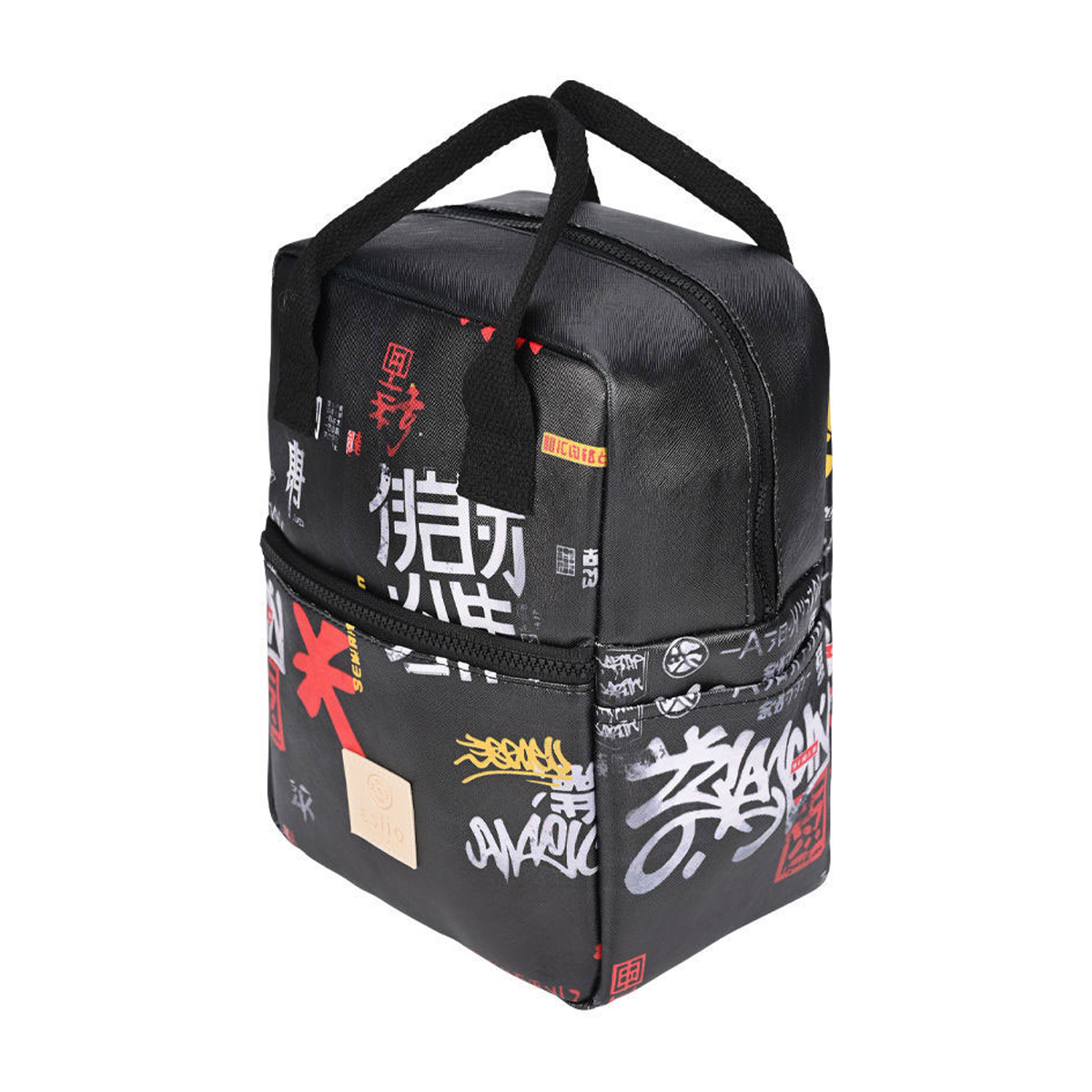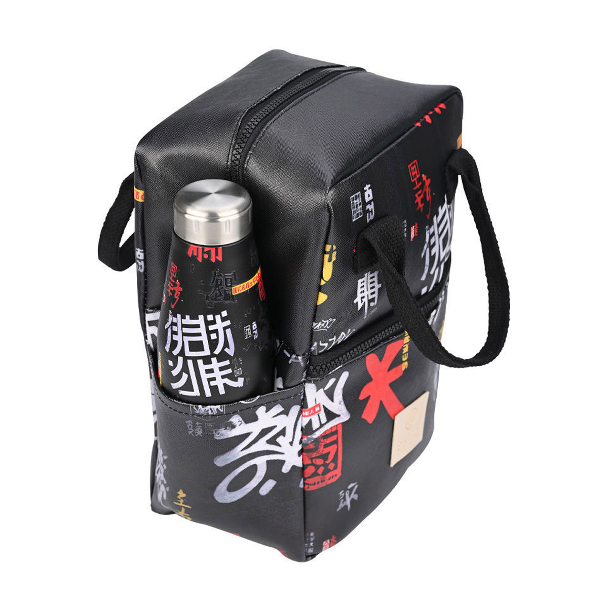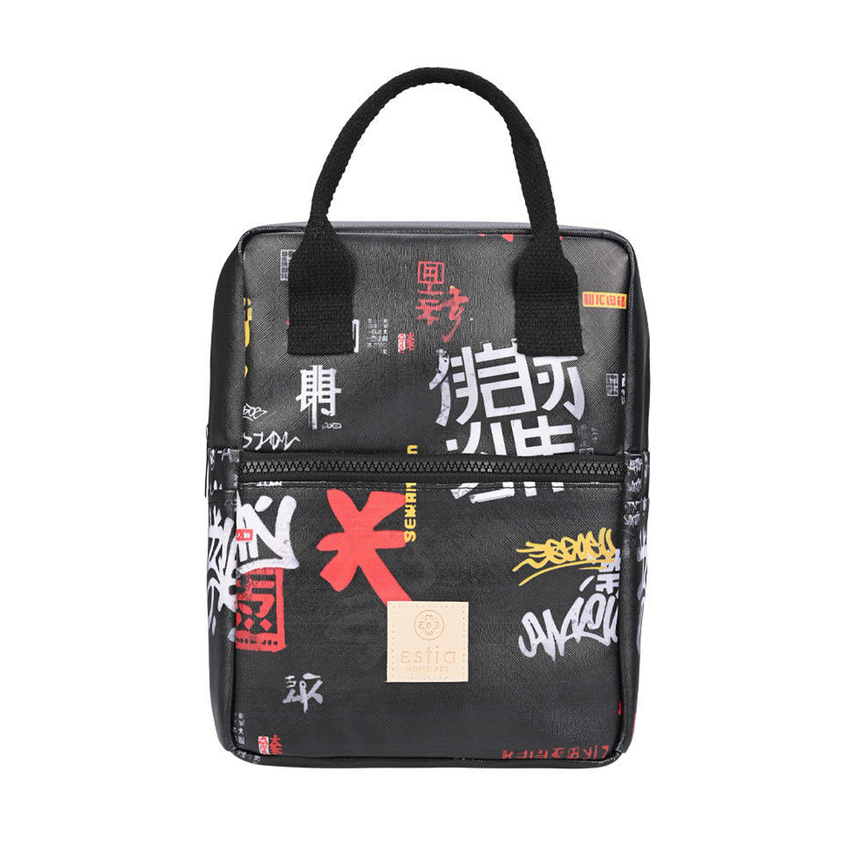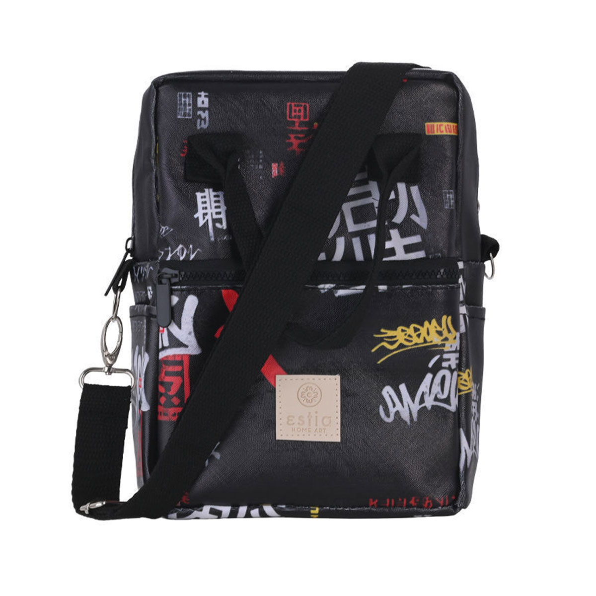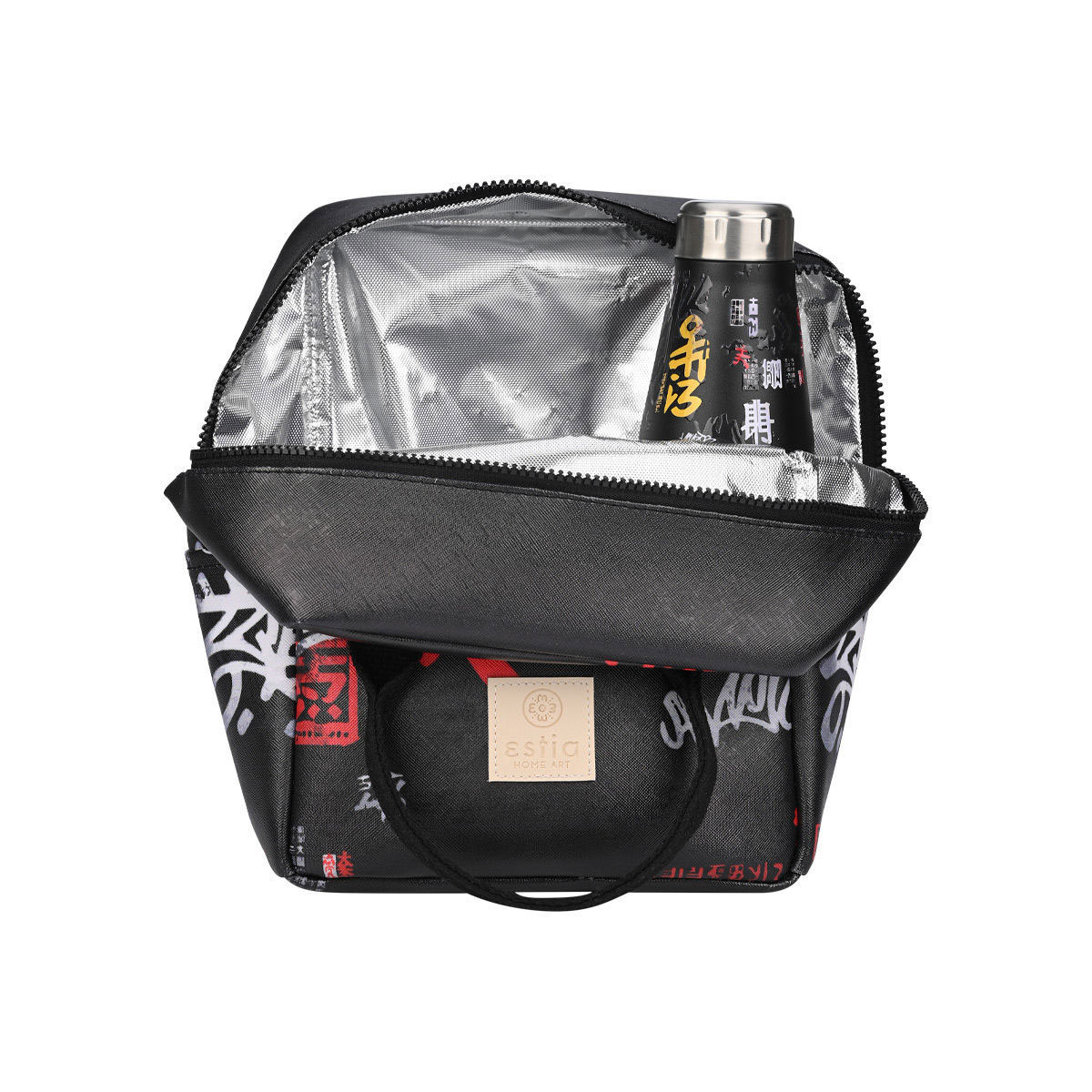 Ισοθερμική τσάντα φαγητού από την εταιρεία εstia σε μαύρο χρώμα με πολύχρωμο μοντέρνο σχέδιο. Είναι μέρος της συλλογής "Save The Aegean". Η εταιρεία εstia συνεισφέρει στον οργανισμό "Save The Aegean" με 1% επί των πωλήσεων, για καθαρότερες θάλασσες και ένα καλύτερο αύριο. Η εξωτερική επιφάνεια της τσάντας είναι κατασκευασμένη από PVC leather, ένα ανθεκτικό συνθετικό υλικό που προσφέρει κομψή εμφάνιση και μεγάλη διάρκεια ζωής. Το υφασμα αυτό προσομοιώνει την εμφάνιση και υφή του φυσικού δέρματος, αλλά είναι κατασκευασμένο από PVC, ένα είδος πλαστικού. Διαθέτει ισοθερμική επένδυση και η τσάντα κλείνει με φερμουάρ. Θήκη για μπουκάλι ή θερμός εσωτερικά και εξωτερικά. Επίσης, έχει μια μπροστινή τσέπη με φερμουάρ για μικροαντικείμενα. Η άνετη λαβή της είναι πολύ πρακτική για μεταφορά. Στα πλαϊνά διαθέτει θηλιές για να βάλετε το λουρί και να μπορείτε να την κρεμάτε είτε από τον ώμο είτε χιαστί. Ιδανική για το γραφείο, το σχολείο και οποιαδήποτε άλλη δραστηριότητα. Συνδυάστε το με το λουράκι τσάντας Midnight Black για ένα ολοκληρωμένο αποτέλεσμα. *Το λουρί πωλείται ξεχωριστά.*