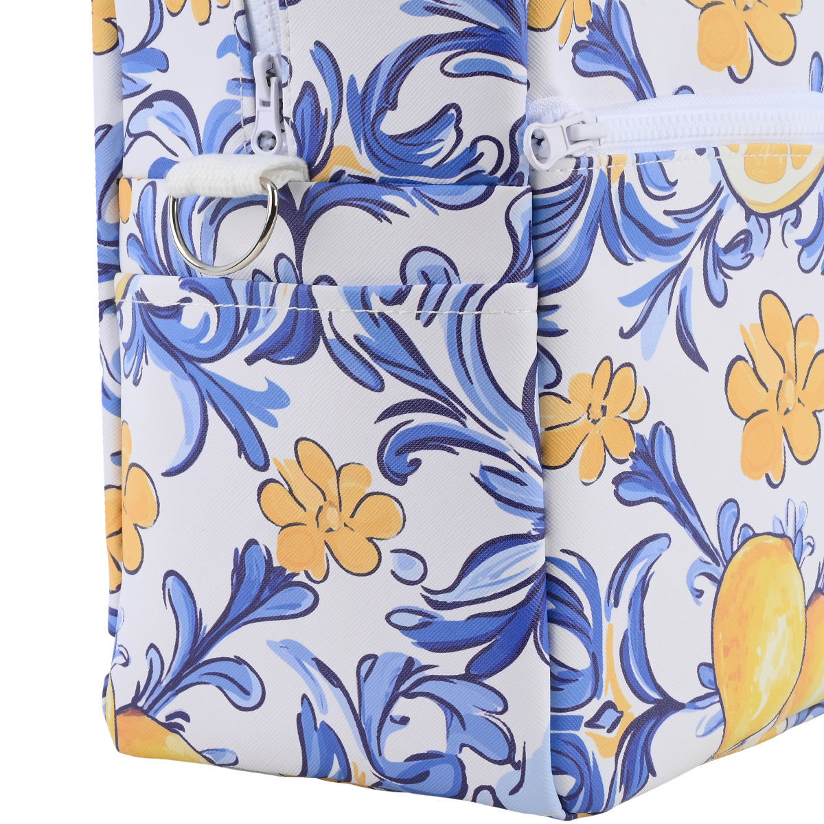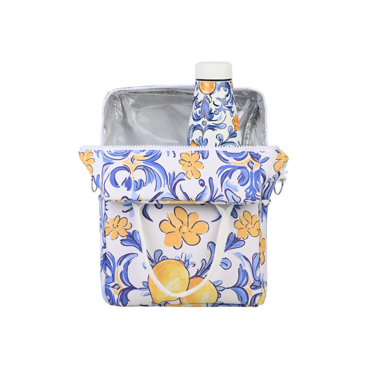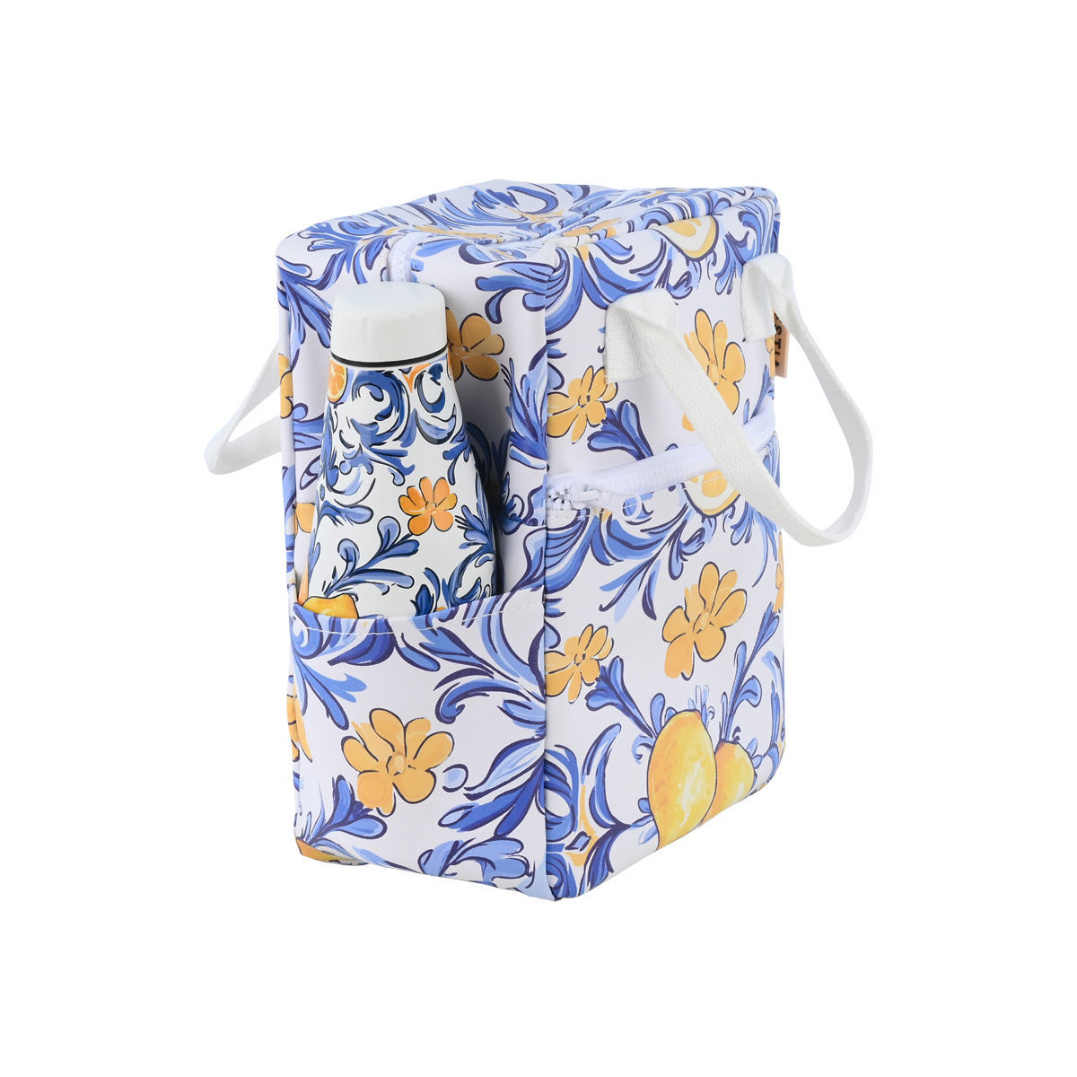 Ισοθερμική τσάντα φαγητού από την εταιρεία εstia από την σειρά "Save The Aegean". Έχει λευκό φόντο με μπλε-κίτρινες λεπτομέρειες και μοντέρνο σχέδιο. Η εταιρεία εstia συνεισφέρει στον οργανισμό "Save The Aegean" με 1% επί των πωλήσεων, για καθαρότερες θάλασσες και ένα καλύτερο αύριο. Η εξωτερική επιφάνεια της τσάντας είναι κατασκευασμένη από PVC leather, ένα ανθεκτικό συνθετικό υλικό που προσφέρει κομψή εμφάνιση και μεγάλη διάρκεια ζωής. Το υφασμα αυτό προσομοιώνει την εμφάνιση και υφή του φυσικού δέρματος, αλλά είναι κατασκευασμένο από PVC, ένα είδος πλαστικού. Eσωτερικά έχει ισοθερμική επένδυση που διατηρεί την θερμοκρασία του φαγητού ή του ποτού σας για περισσότερη ώρα. Διαθέτει 2 θέσεις για μπουκάλια, μία στην κύρια θήκη και μία εξωτερικά για να μένει το περιεχόμενο του μπουκαλιού σας στην κατάλληλη θερμοκρασία. Κλείνει με φερμουάρ και μεταφέρεται εύκολα χάρη στις πρακτικές λαβές της. Με εξωτερική θήκη που κλείνει με φερμουάρ για να τοποθετήσετε τα κλειδιά, το κινητό ή ότι άλλο χρειάζεστε. Ιδανική για το γραφείο, το σχολείο και οποιαδήποτε άλλη δραστηριότητα. Χωρητικότητα: 7lt.