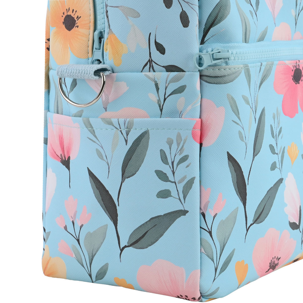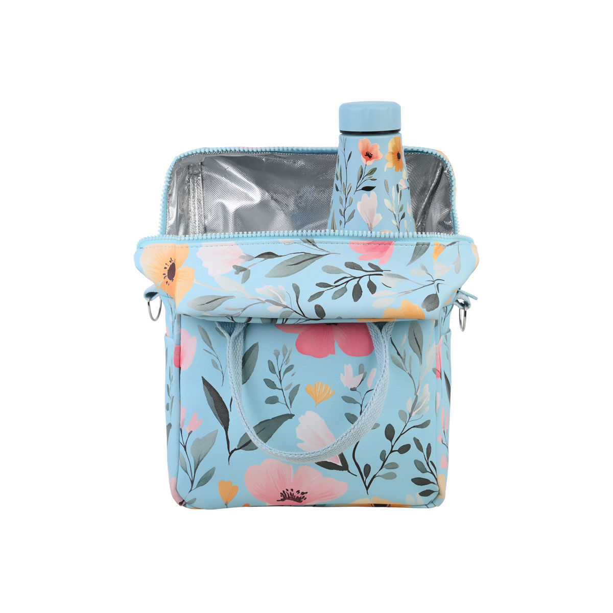 Ισοθερμική τσάντα φαγητού από την εταιρεία εstia από την σειρά "Save The Aegean". Έχει γαλάζιο φόντο με πολύχρωμο φλοράλ σχέδιο. Η εταιρεία εstia συνεισφέρει στον οργανισμό "Save The Aegean" με 1% επί των πωλήσεων, για καθαρότερες θάλασσες και ένα καλύτερο αύριο. Η εξωτερική επιφάνεια της τσάντας είναι κατασκευασμένη από PVC leather, ένα ανθεκτικό συνθετικό υλικό που προσφέρει κομψή εμφάνιση και μεγάλη διάρκεια ζωής. Το υφασμα αυτό προσομοιώνει την εμφάνιση και υφή του φυσικού δέρματος, αλλά είναι κατασκευασμένο από PVC, ένα είδος πλαστικού. Εσωτερικά έχει ισοθερμική επένδυση που διατηρεί την θερμοκρασία του φαγητού ή του ποτού σας για περισσότερη ώρα. Διαθέτει 2 θέσεις για μπουκάλια, μία στην κύρια θήκη και μία εξωτερικά για να μένει το περιεχόμενο του μπουκαλιού σας στην κατάλληλη θερμοκρασία. Κλείνει με φερμουάρ και μεταφέρεται εύκολα χάρη στις πρακτικές λαβές της. Με εξωτερική θήκη που κλείνει με φερμουάρ για να τοποθετήσετε τα κλειδιά, το κινητό ή ότι άλλο χρειάζεστε. Ιδανική για το γραφείο, το σχολείο και οποιαδήποτε άλλη δραστηριότητα. Χωρητικότητα: 7lt.