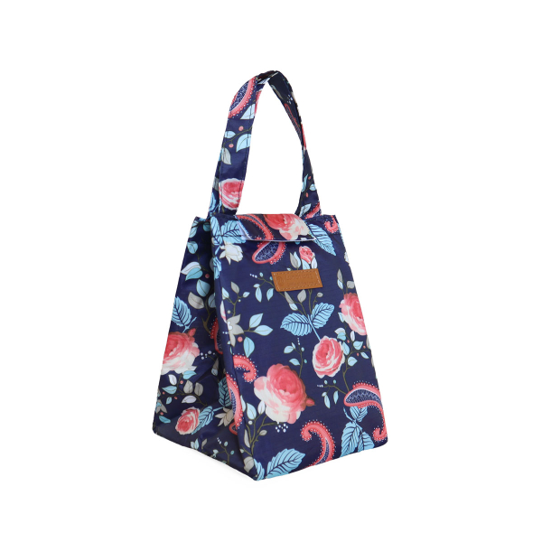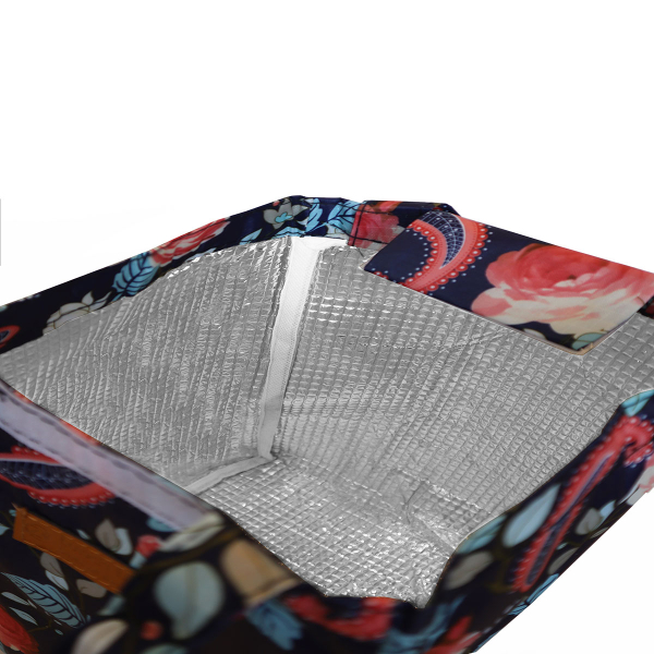 Ισοθερμική τσάντα φαγητού χωρητικότητας 8 λίτρων από την εταιρεία Amber σε μπλε χρώμα με ροζ και γαλάζιες λεπτομέρειες. Έχει φλοράλ σχέδιο. Είναι κατασκευασμένη εξωτερικά από πολυεστερικό ύφασμα oxford. Το εσωτερικό της είναι κατασκευασμένο από ειδικό θερμομονωτικό υλικό. Έχει μία ενιαία κεντρική θήκη και κλείνει με velcro. Έχει λαβή μεταφοράς για να μεταφέρετε εύκολα. Είναι απαραίτητη τους καλοκαιρινούς μήνες ώστε να κρατάει δροσερά τα φαγητά και τα ποτά σας στην δουλειά, στην παραλία ή στις εκδρομές.
