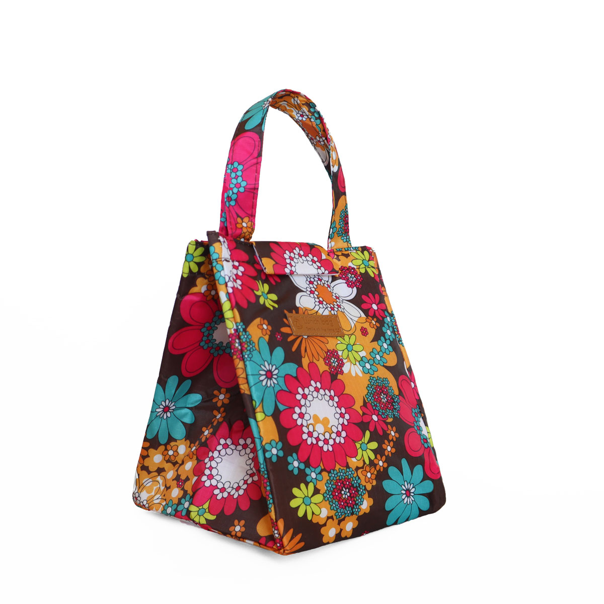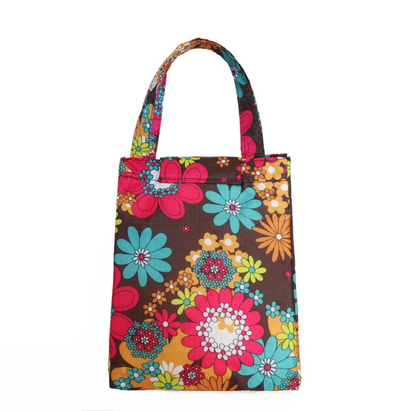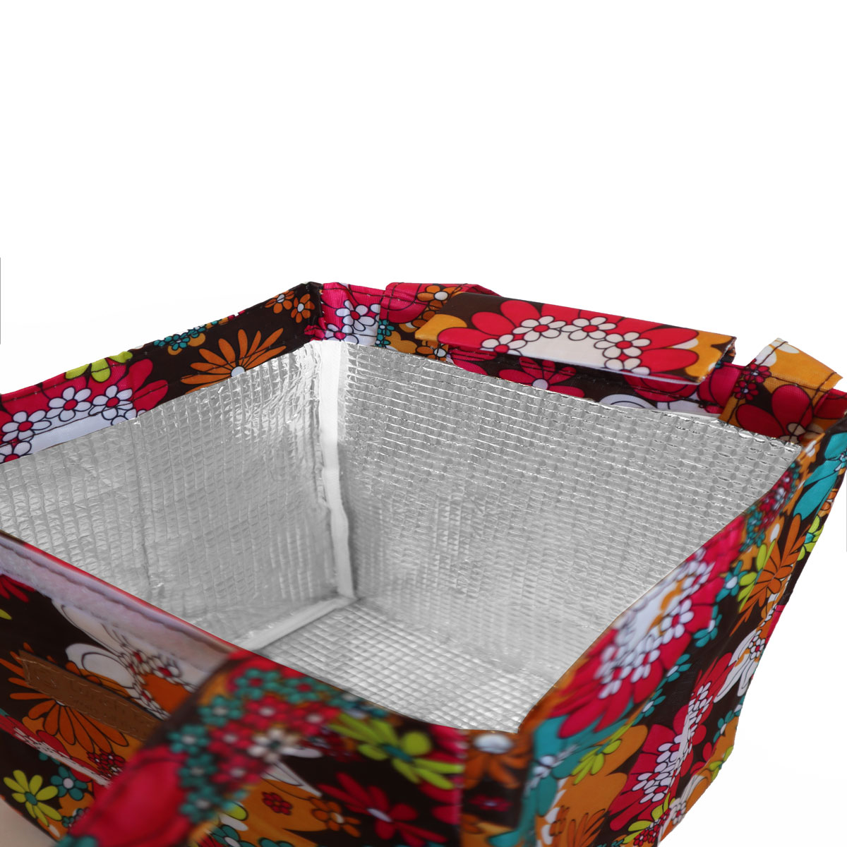 Ισοθερμική τσάντα φαγητού χωρητικότητας 8 λίτρων από την εταιρεία Amber σε καφέ χρώμα με πολύχρωμες λεπτομέρειες και φλοράλ σχέδιο. Είναι κατασκευασμένη εξωτερικά από πολυεστερικό ύφασμα oxford. Το εσωτερικό της είναι κατασκευασμένο από ειδικό θερμομονωτικό υλικό. Έχει μία ενιαία κεντρική θήκη και κλείνει με velcro. Έχει λαβή μεταφοράς για να μεταφέρετε εύκολα. Είναι απαραίτητη τους καλοκαιρινούς μήνες ώστε να κρατάει δροσερά τα φαγητά και τα ποτά σας στην δουλειά, στην παραλία ή στις εκδρομές.