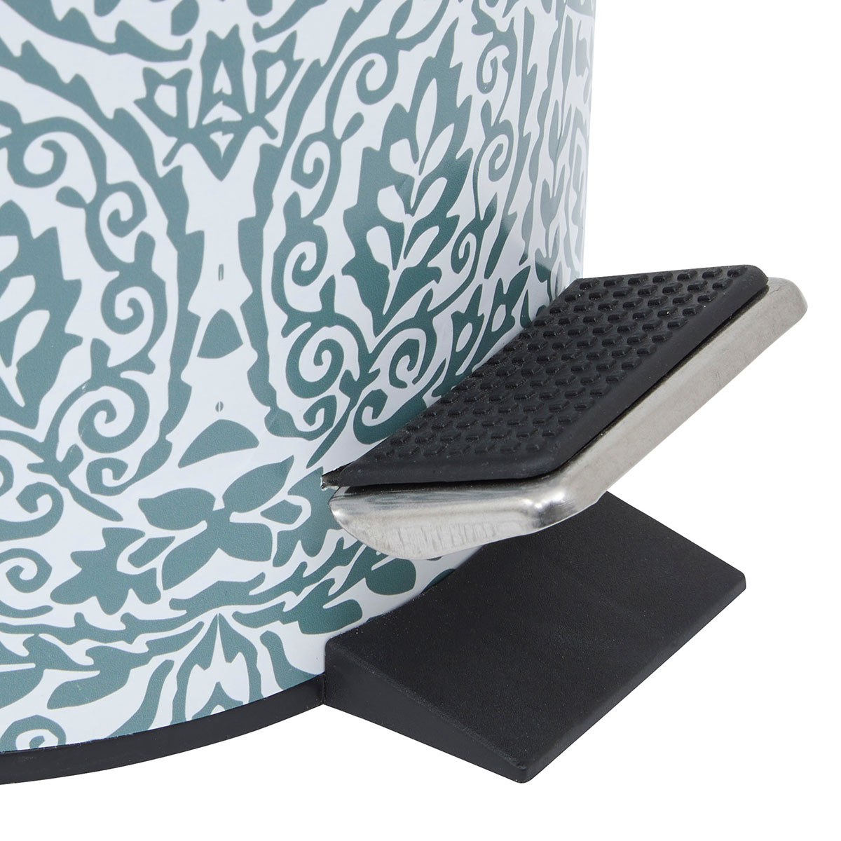 Κάδος απορριμμάτων για το μπάνιο με χωρητικότητα 3 λίτρα. Είναι κατασκευασμένος από μεταλλικό υλικό σε χακί χρώμα με λευκό μοντέρνο σχέδιο. Διαθέτει πεντάλ και μηχανισμό soft close για αργό και αθόρυβο κλείσιμο. Στο πίσω μέρος έχει λαβή για εύκολη μεταφορά και εσωτερικά διαθέτει αφαιρούμενο πλαστικό κάδο ώστε να καθαρίζεται εύκολα. Ιδανικός κάδος για κάθε μπάνιο. Συνδυάστε τον με τα υπόλοιπα προϊόντα του ίδιου σετ για ένα ολοκληρωμένο αποτέλεσμα.