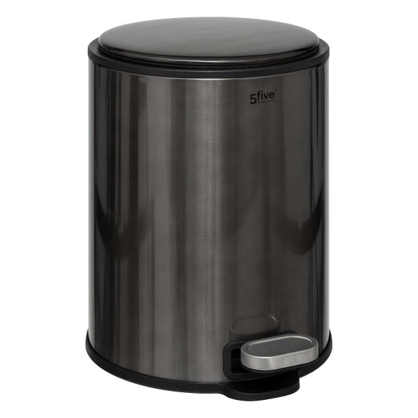 Κάδος απορριμμάτων με πεντάλ κατασκευασμένος από μεταλλικό υλικό σε μαύρο χρώμα. Έχει εξαιρετικά επίπεδο καπάκι και σύστημα αγκίστρωσης για τη σακούλα. Διαθέτει μηχανισμό soft close, ώστε να κλείνει αργά και αθόρυβα καθώς και εσωτερικό πλαστικό κουβά που αφαιρείται εύκολα για να τον καθαρίζετε. Χωρητικότητα: 6lt.