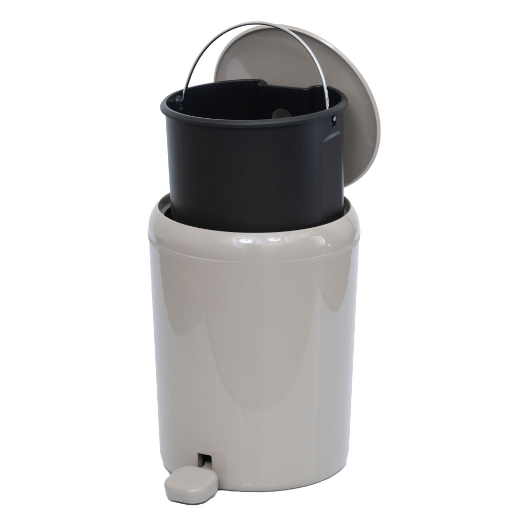 Κάδος απορριμμάτων χωρητικότητας 5lt σε γκρι χρώμα από την εταιρεία Rainbow. Είναι κατασκευασμένο από πλαστικό υλικό. Διαθέτει μηχανισμό πεντάλ για άνοιγμα με σύστημα soft close για αργό και αθόρυβο κλείσιμο.