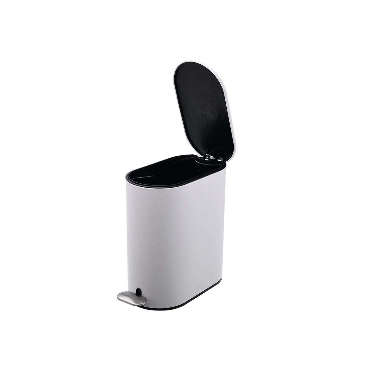 Χαρτοδοχείο slim 5lt σε λευκό ματ χρώμα από την εταιρεία εstia. Διαθέτει σιωπηλό κλείσιμο soft close. Δεν αφήνει δαχτυλικά αποτυπώματα. Ανθεκτικό και σταθερό πεντάλ από κράμα ψευδαργύρου. Εάν το καπάκι ανοιχτεί χειροκίνητα, παραμένει ανοιχτό για εύκολη αντικατάσταση της πλαστικής σακούλας. Ειδική λαβή στο πίσω μέρος για εύκολή και ξεκούραστη μετακίνηση. Διαθέτει εσωτερικό πλαστικό δοχείο