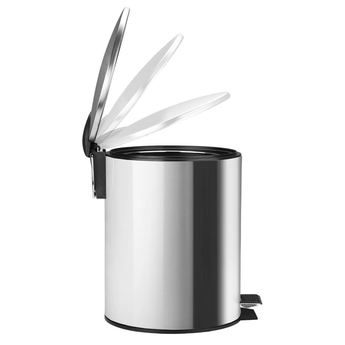 Ανοξείδωτος ματ κάδος απορριμμάτων με χωρητικότητα 5 λίτρων. Ανθεκτικό και σταθερό πεντάλ από ατσάλι. Ειδική λαβή στο πίσω μέρος για εύκολη και ξεκούραστη μετακίνηση. Διαθέτει εσωτερικό πλαστικό δοχείο