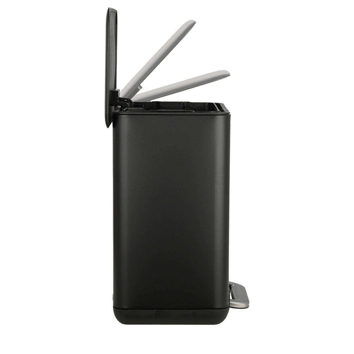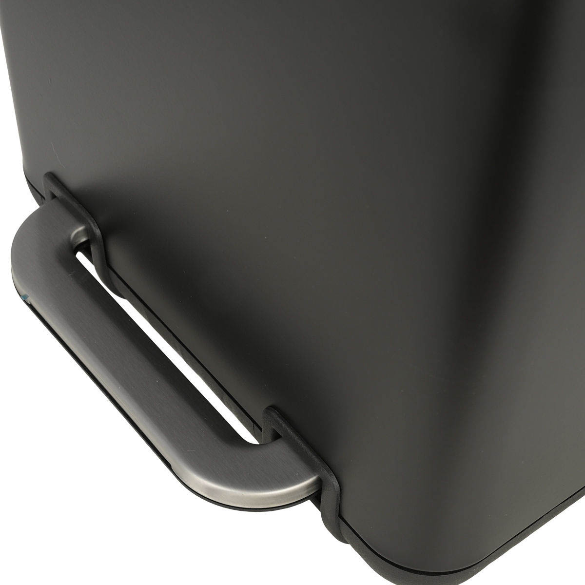 Κάδος απορριμμάτων 6lt από την εταιρεία εstia σε μαύρο χρώμα. Είναι κατασκευασμένος από ανοξείδωτο ατσάλι. Διαθέτει μηχανισμό soft close, ώστε να κλείνει αργά και αθόρυβα. Έχει εσωτερικό πλαστικό κουβά που αφαιρείται εύκολα για να τον καθαρίζετε. Έχει λαβή για εύκολη μεταφορά και σταθερό πεντάλ.