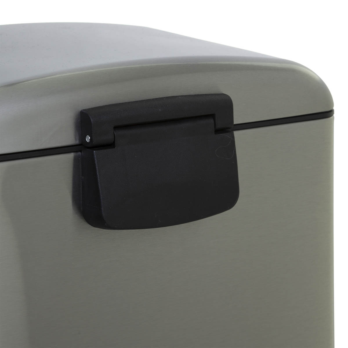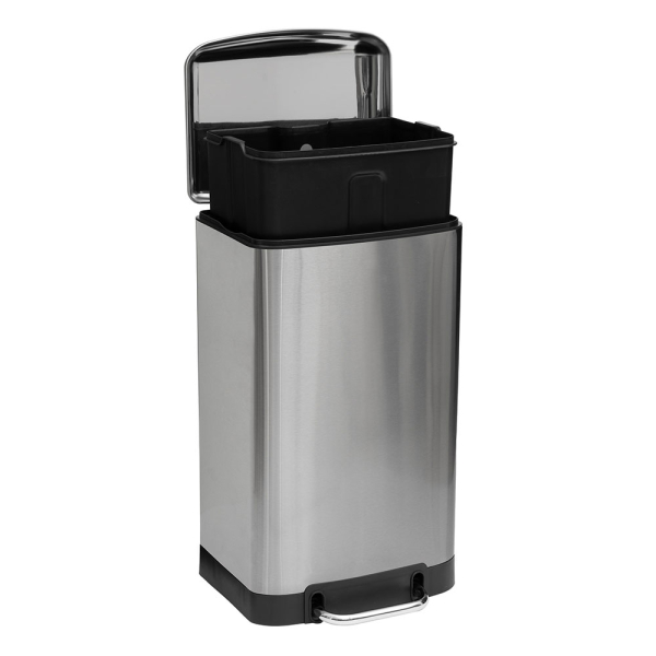 Κάδος απορριμμάτων για την κουζίνα με χωρητικότητα 30 λίτρα. Είναι κατασκευασμένος από ανοξείδωτο μέταλλο σε ασημί απόχρωση. Διαθέτει πεντάλ και μηχανισμό soft close για αργό και αθόρυβο κλείσιμο. Έχει λαβή στο πίσω μέρος για εύκολη μετακίνηση. Εσωτερικά έχει αφαιρούμενο πλαστικό κάδο ώστε να καθαρίζεται εύκολα. Προτείνεται χρήση σακούλας 50lt.