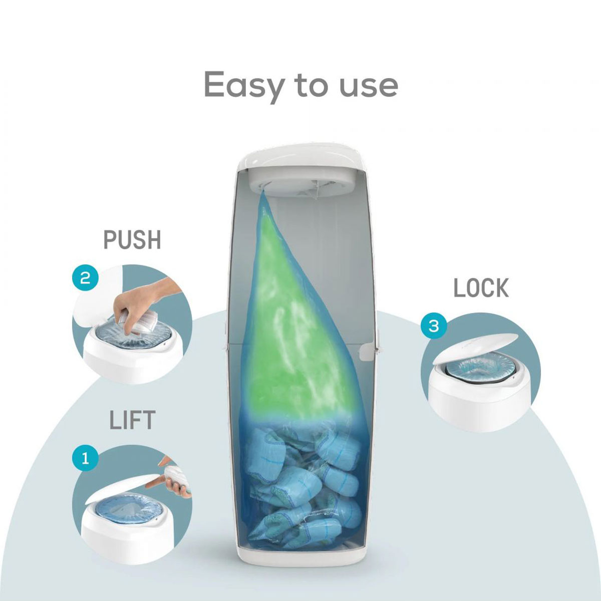 Κάδος απόρριψης βρεφικής πάνας σε λευκό χρώμα από την εταιρεία Angelcare. Κατασκευασμένος από ανθεκτικό πλαστικό υλικό. Έχει χωριτικότηταέως και 70 πάνες νεογέννητου.Η πολυστρωματική αντιβακτηριδιακή μεμβράνη στις ανταλλακτικές κασετίνες συμβάλλει στην παγίδευση των μικροβίων και των οσμών, εξασφαλίζοντας ένα υγιεινό περιβάλλον. Καθώς οι πάνες δεν περιστρέφονται μεμονωμένα, το προϊόν χρησιμοποιεί έως και 4 φορές λιγότερο πλαστικό σε σύγκριση με άλλα προϊόντα της αγοράς. .Όλες οι πάνες κλείνονται με ασφάλεια μέσα στον κάδο και δεν χρειάζεται να τις αγγίξετε ή να τις μυρίσετε. Αφαιρείται εύκολα όπως ένας απλός σάκος απορριμμάτων περίπου μία φορά την εβδομάδα. Ο μηχανισμός κοπής της σακούλας βρίσκεται με ασφάλεια μέσα στον κάδο. Συμβατό με τις ανταλλακτικές κασέτες 3pack Dress Up octogonales BR77373. Με ευκολία στην χρήση σε 3 βήματα πατήστε το κουμπί για να ανοίξετε το καπάκι, περάστε την πάνα από το άνοιγμα και κλείστε το καπάκι. Ιδανικός για να προσφέρει μια πρακτική και αποτελεσματική λύση για τη διαχείριση των οσμών από τις χρησιμοποιημένες πάνες, διατηρώντας το παιδικό δωμάτιο με ευχάριστη και φρέσκια μυρωδιά.