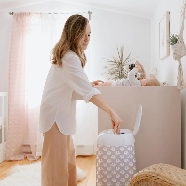 Κάλυμμα κάδου απορριμμάτων Angel Care Dress Up σε γκρι χρώμα, με ελεφαντάκια σχέδιο από την εταιρεία Angel Care. Κατασκευασμένο από πολυεστερικό ύφασμα, που το καθιστά ανθεκτικό. Το κάλυμμα εφαρμόζει αποκλειστικά στον κάδο Angelcare Dress Up. Χαρίστε στο δωμάτιου του παιδιού σας ένα έξτρα παιχνιδιάρικο ύφος.