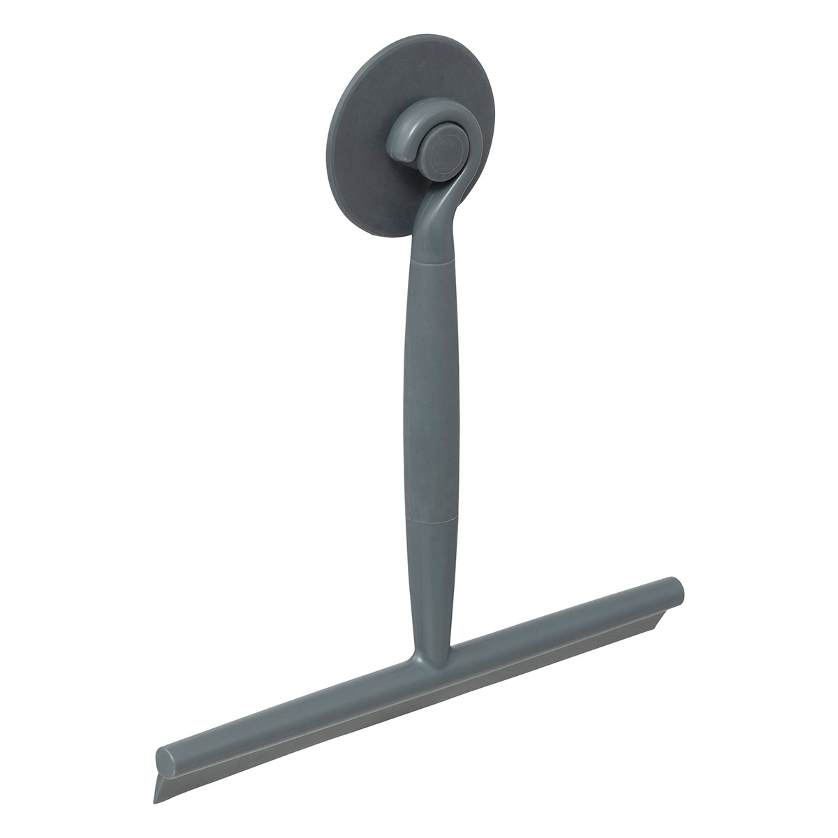 Καθαριστής επιφανειών ιδανικός για τις ομαλές επιφάνειες στο μπάνιο, όπως οι γυάλινες καμπίνες, ο καθρέφτης, τα πλακάκια, κλπ. Είναι κατασκευασμένος από πλαστικό υλικό σε γκρι χρώμα. Διαθέτει βεντούζα για να την τοποθετήσετε όπου επιθυμείτε και να τον κρεμάτε.