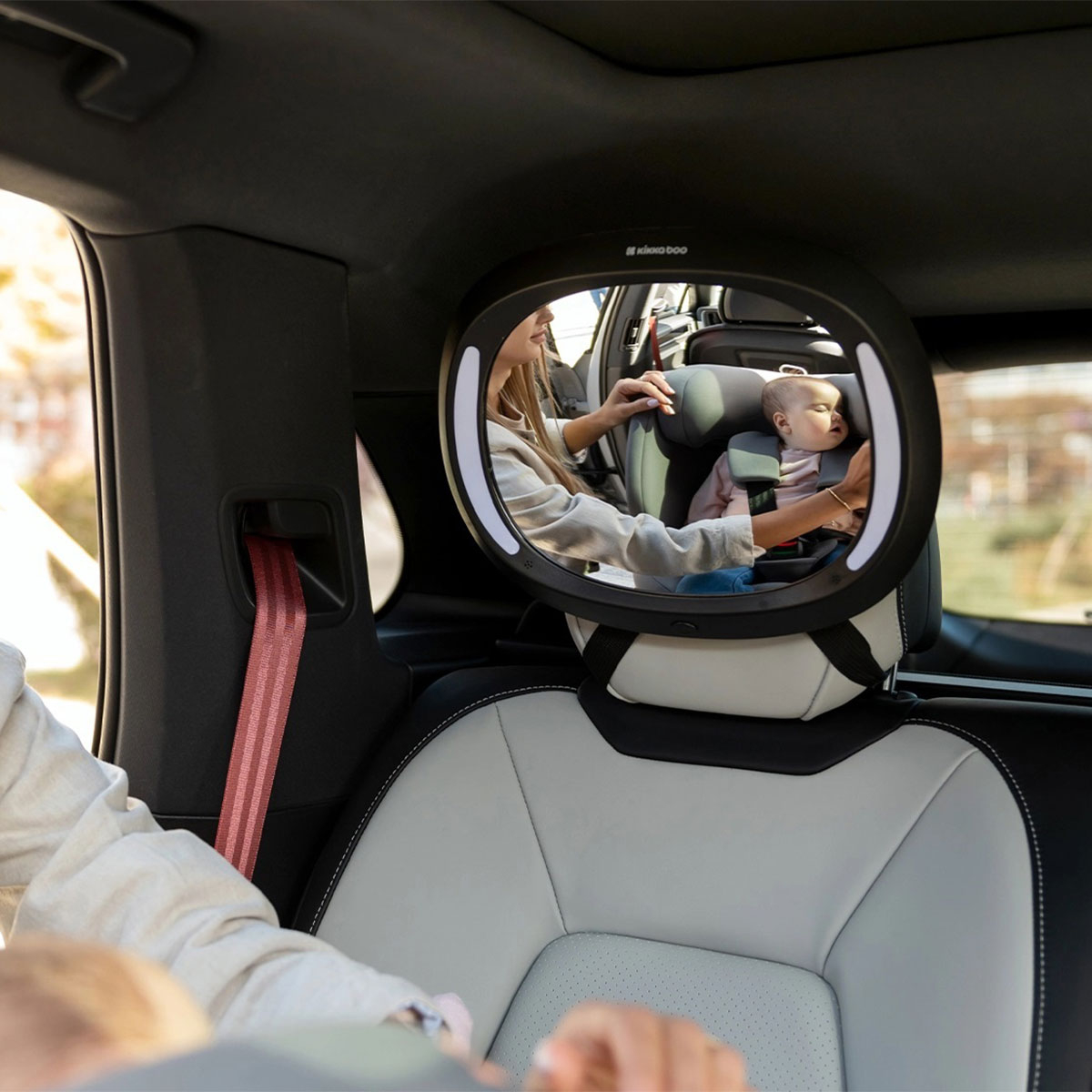 Καθρέφτης αυτοκινήτου σε μαύρο χρώμα από την εταιρεία Kikka Boo. Σας προσφέρει απρόσκοπτη οπτική στο παιδί χωρίς να χρειάζεται να γυρίσετε προς τα πίσω για να το δείτε. Κατασκευασμένο από ασφαλή, άθραυστα υλικά που αποτρέπουν τυχόν τραυματισμούς. Η εγκατάστασή του γίνεται μέσω ρυθμιζόμενου ιμάντα και κλιπ που σας δίνει την δυνατότητα να το ρυθμίσετε εύκολα στο επιθυμητό σημείο. Διαθέτει φωτάκια LED για να βλέπετε καθαρά και την νύχτα και ασύρματο χειριστήριο για να ρυθμίζετε τον φωτισμό.
