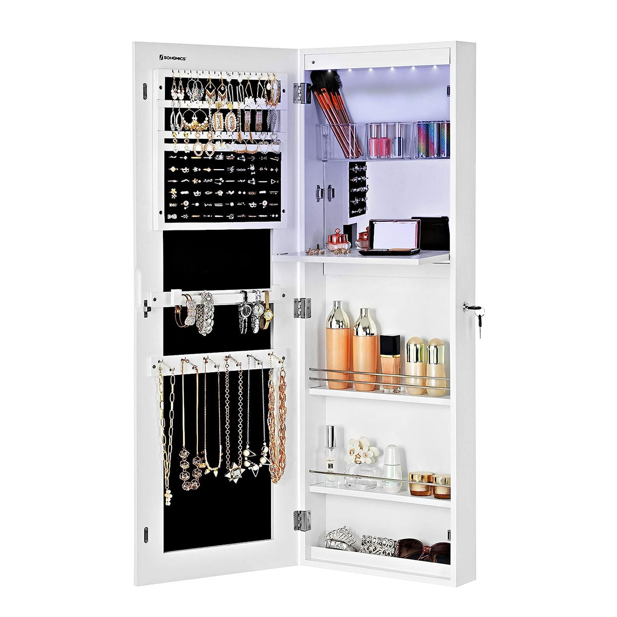 | SongmicsΚαθρέφτης Τοίχου/Κοσμηματοθήκη Με Led (37x10x108) Songmics JBC63WV1