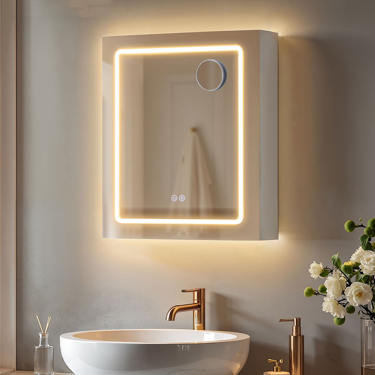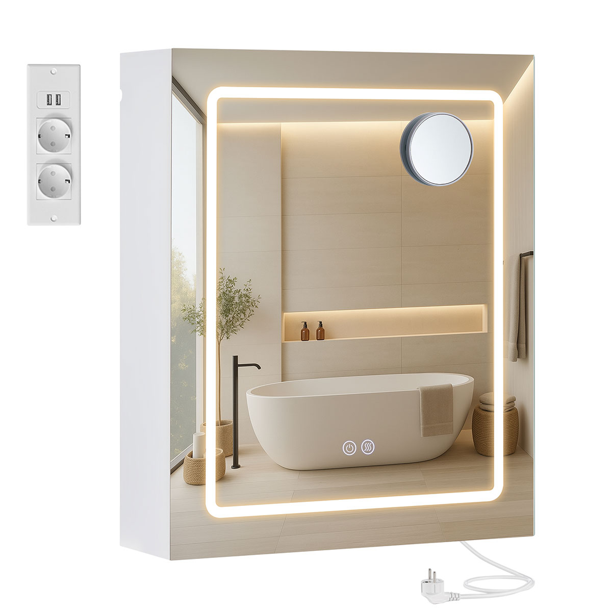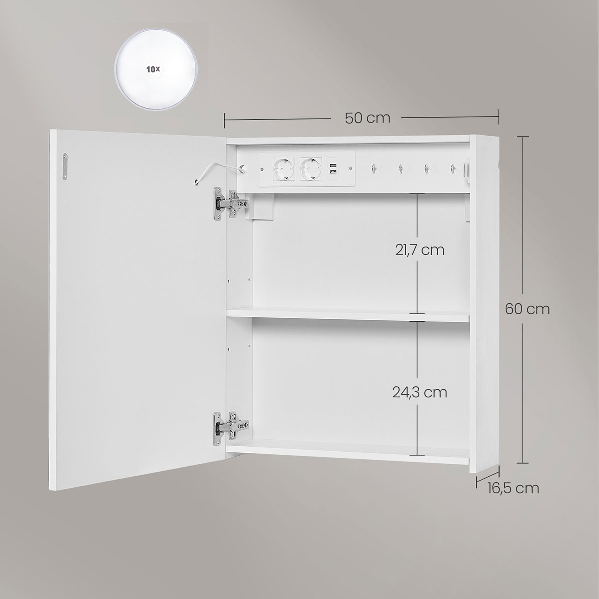 | VasagleΚαθρέφτης Τοίχου Με Ντουλάπι - Ενσωματωμένες Πρίζες & Led (50x16.5x60) Vasagle BBK133W01