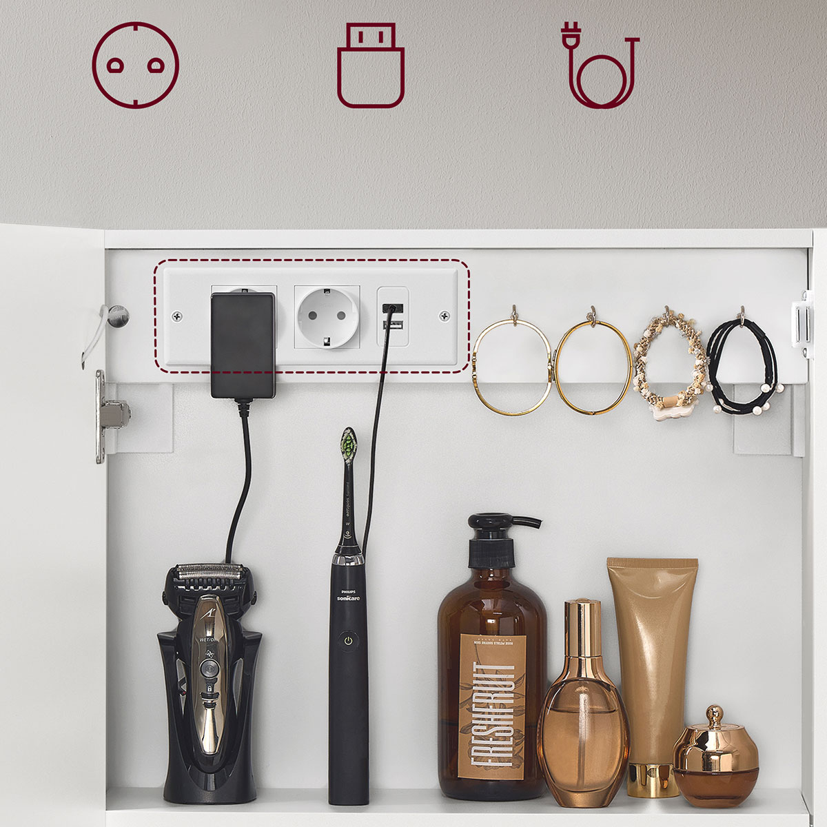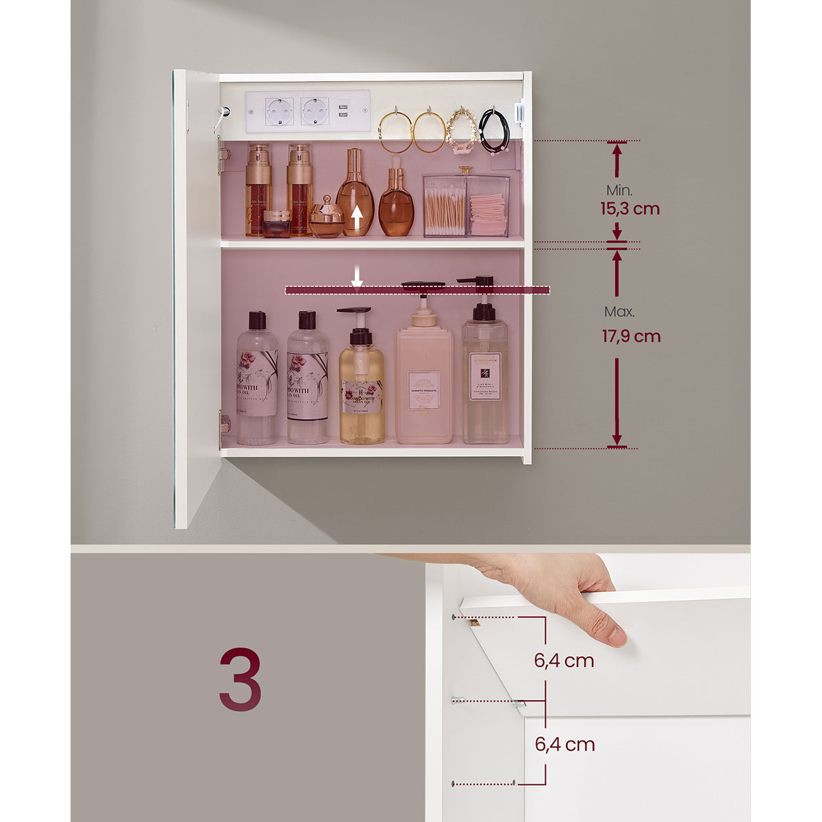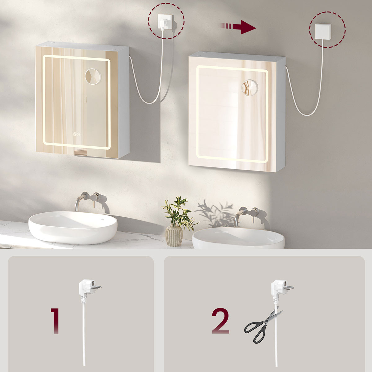 | VasagleΚαθρέφτης Τοίχου Με Ντουλάπι - Ενσωματωμένες Πρίζες & Led (50x16.5x60) Vasagle BBK133W01
