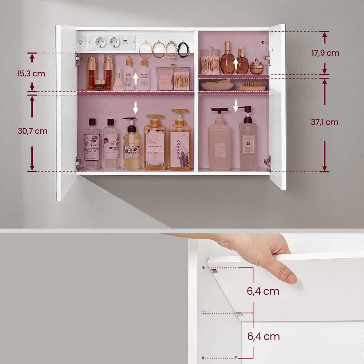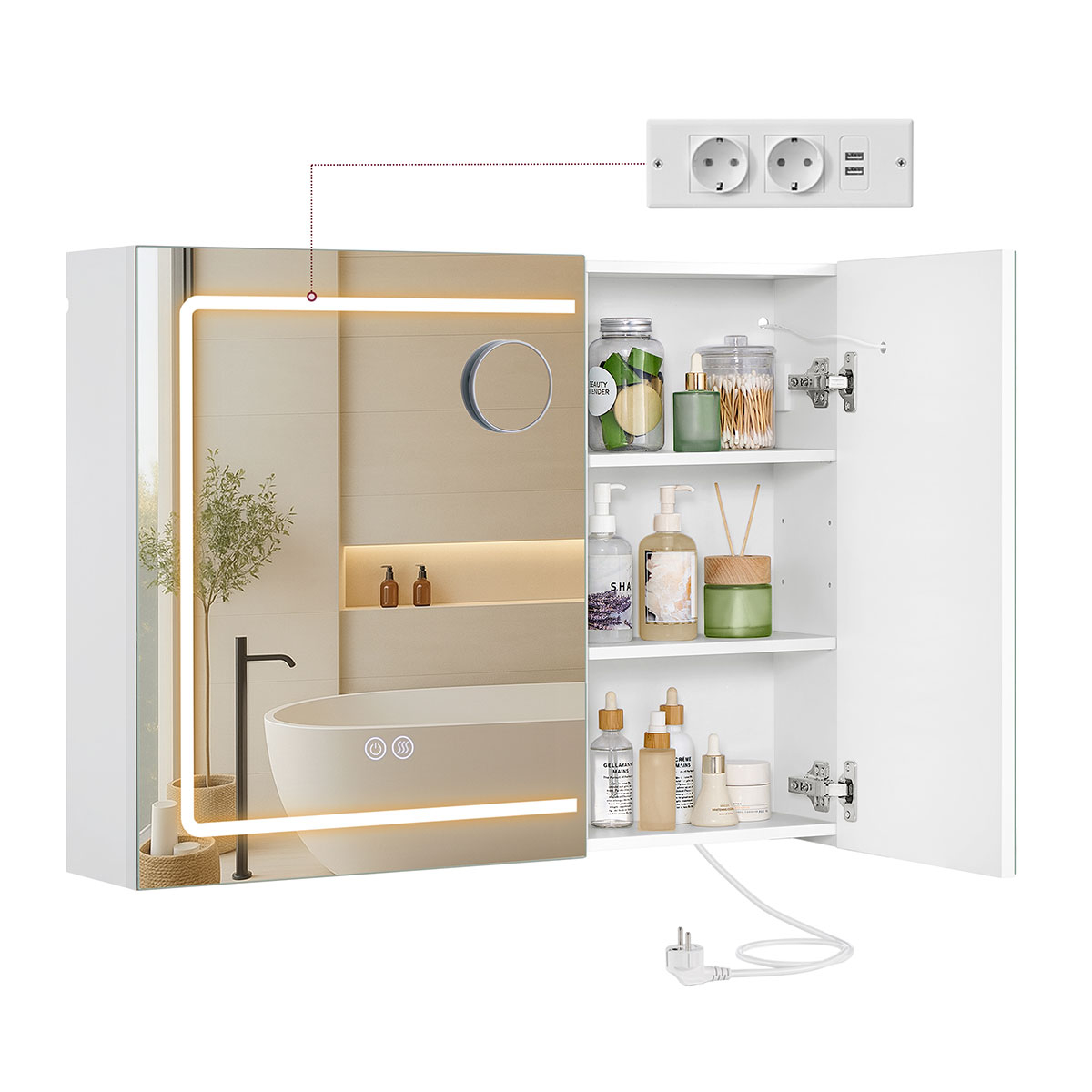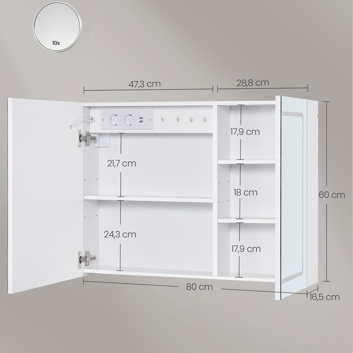 | VasagleΚαθρέφτης Τοίχου Με Ντουλάπι - Ενσωματωμένες Πρίζες & Led (80x16.5x60) Vasagle BBK134W01