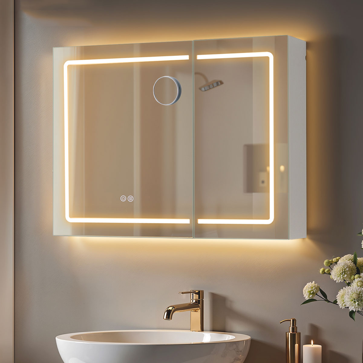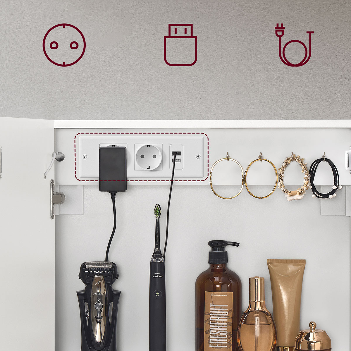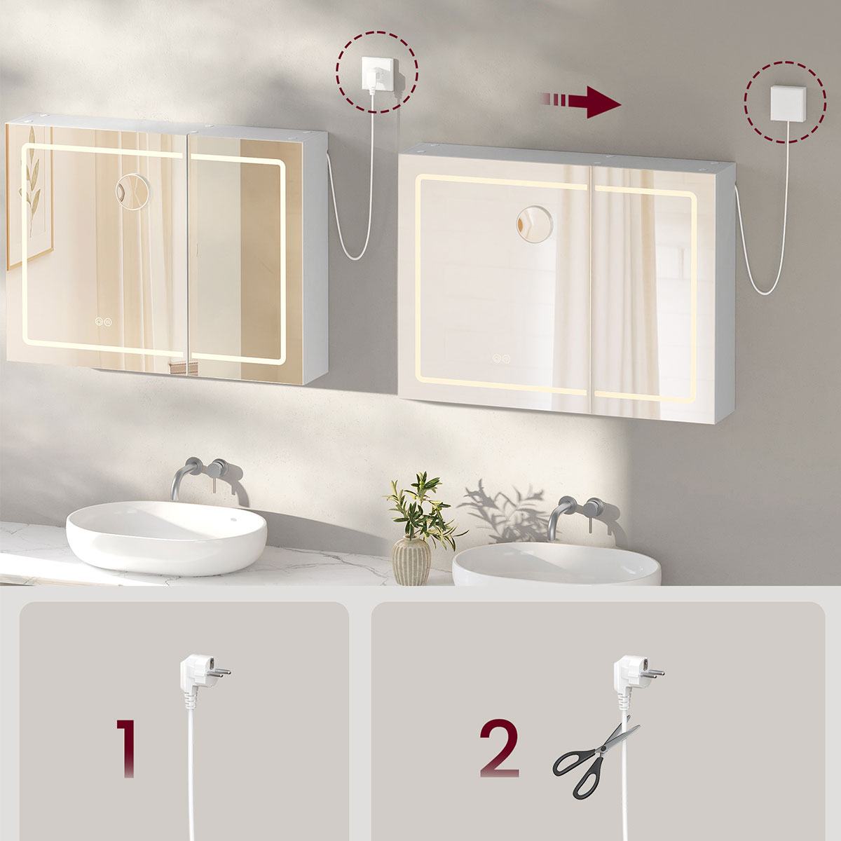 | VasagleΚαθρέφτης Τοίχου Με Ντουλάπι - Ενσωματωμένες Πρίζες & Led (80x16.5x60) Vasagle BBK134W01