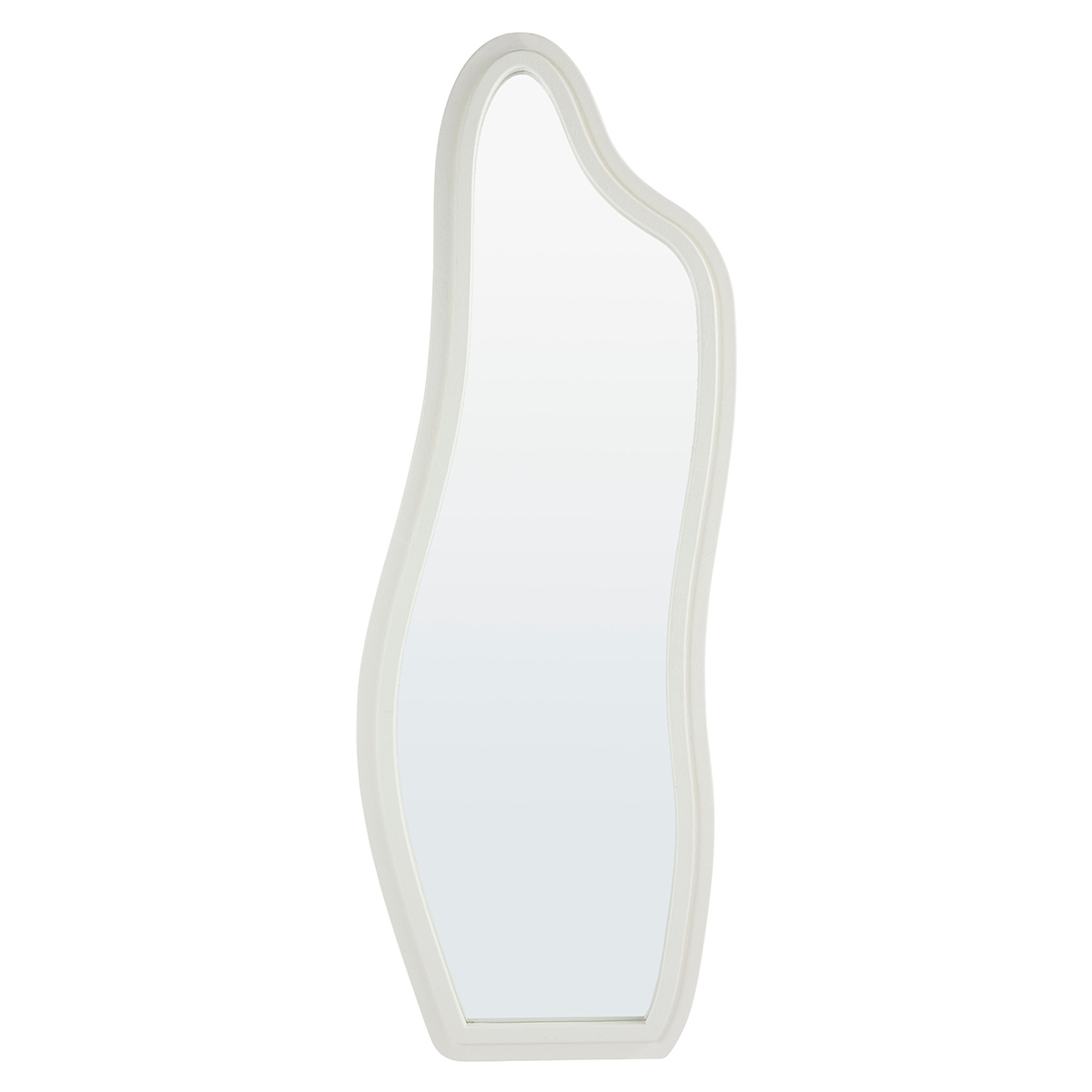 Επιτοίχιος ολόσωμος καθρέφτης με ακανόνιστο σχήμα και μοντέρνο ύφος, ιδανικός για να διακοσμήσει το υπνοδωμάτιο, το χωλ, το γραφείο, ή σε όποιο άλλο χώρο ταιριάζει. Το πλαίσιο είναι κατασκευασμένο από ξύλο MDF_E0 σε λευκό χρώμα. Στο πίσω μέρος διαθέτει υποδοχή για κρέμασμα του καθρέφτη σε κάθετη μορφή. Μπορεί να λειτουργήσει ως χρηστικό και ως διακοσμητικό στοιχείο στο χώρο σας.