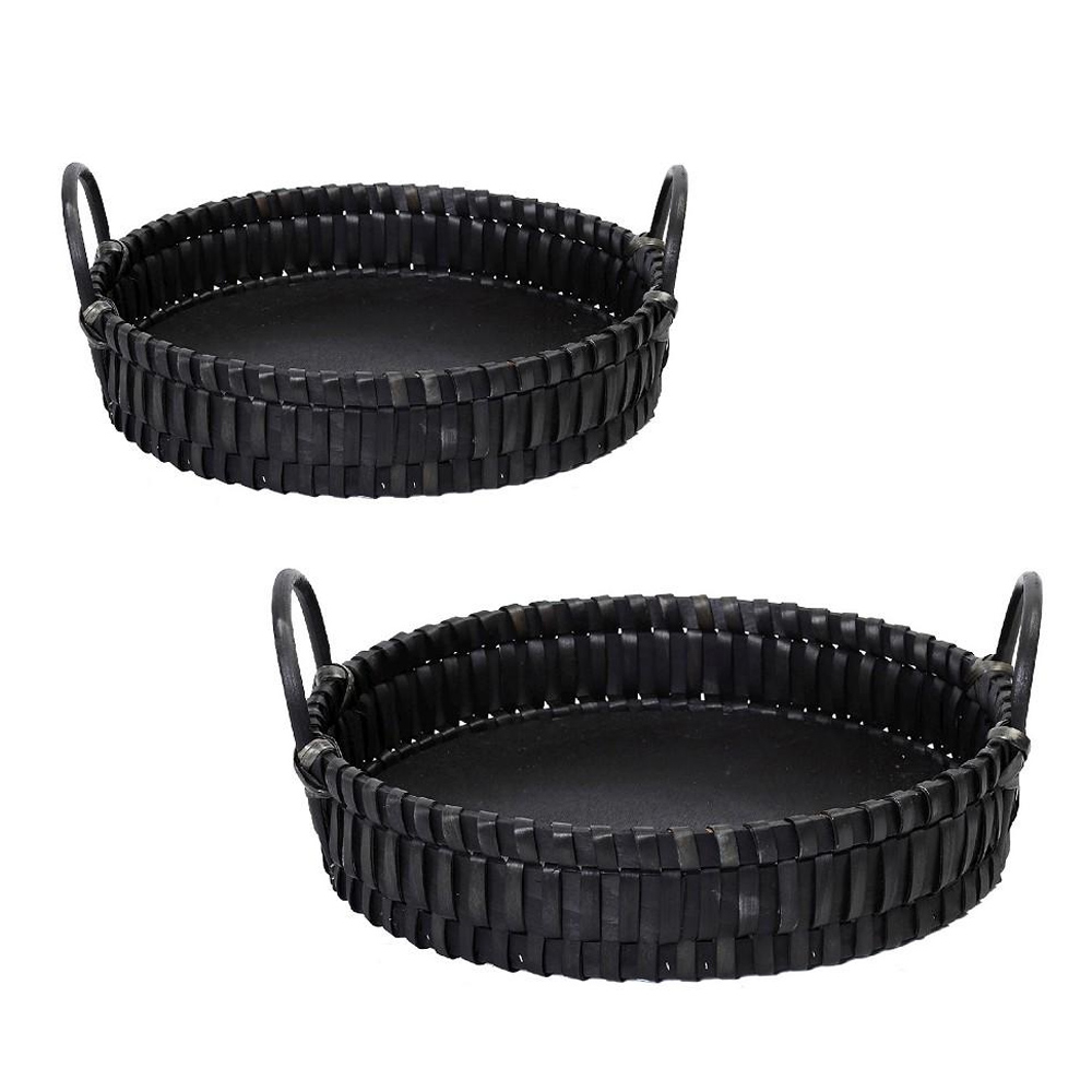Δίσκοι διακόσμησης από την εταιρεία Espiel. Το σετ περιλαμβάνει 2 δίσκους διαφορετικών μεγεθών με λαβές για εύκολη μεταφορά. Είναι κατασκευασμένοι από φυσική ψάθα σε μαύρο χρώμα με πλεκτό σχέδιο και μεταλλικό σκελετό. Ιδανικοί για να τους τοποθετήσετε στο τραπεζάκι του σαλονιού ή την τραπεζαρία και να δημιουργήσετε την διακόσμηση που επιθυμείτε.