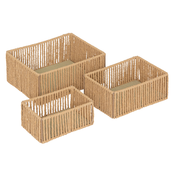 • Τεμάχια: 1 Καλάθι Αποθήκευσης 26εκ.Μx19.5εκ.Πx11εκ.Υ, 1 Καλάθι Αποθήκευσης 22εκ.Μx15.5εκ.Πx9εκ.Υ, 1 Καλάθι Αποθήκευσης 18εκ.Μx11.5εκ.Πx8εκ.Υ