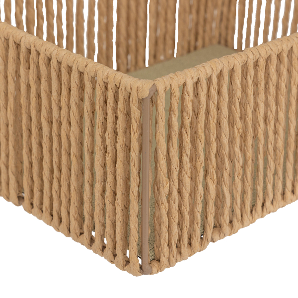 Σετ καλάθια αποθήκευσης με μοντέρνο ύφος. Το σετ περιλαμβάνει 3 διάτρητα καλάθια διαφορετικών μεγεθών, κατασκευασμένα από φυσική ψάθα σε μπεζ χρώμα με μεταλλικό σκελετό και ξύλο MDF_E1. Το εσωτερικό τους είναι σε βεραμάν χρώμα. Ιδανικά για να κρατήσουν οργανωμένα τα μικροαντικείμενα, τα περιοδικά και ότι άλλο φανταστείτε, δίνοντας παράλληλα μια φρέσκια ανάσα στο χώρο σας.