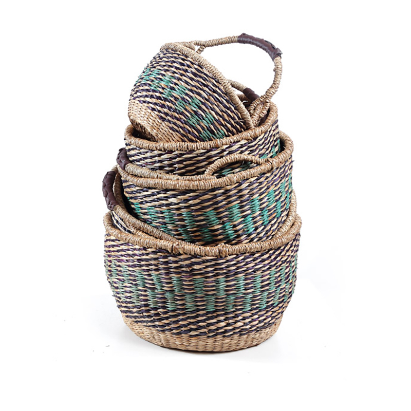 Καλάθια αποθήκευσης από την εταιρεία Soulworks με μοντέρνο σχέδιο. Είναι κατασκευασμένα από seagrass, σε μαύρο και μπεζ χρώμα με πετρόλ λεπτομέρειες. Διαθέτουν χερούλια για να κάνει εύκολη την μεταφορά τους. Το σετ περιλαμβάνει 5 τεμάχια σε διάφορα μεγέθη ιδανικά για το καθιστικό, το μπάνιο ή οποιοδήποτε άλλο χώρο επιθυμείτε.