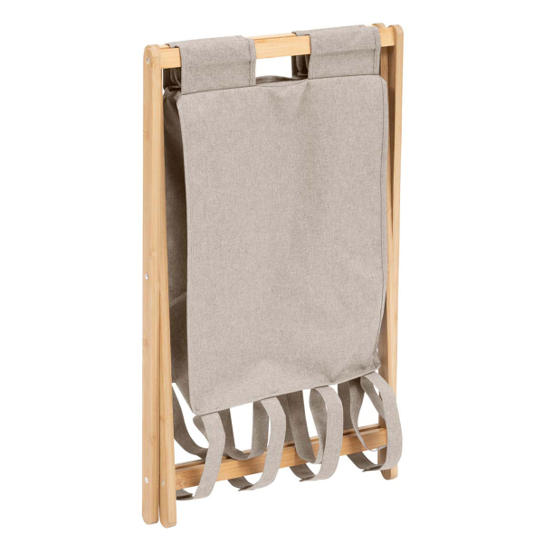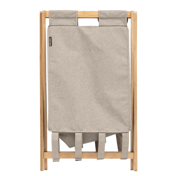 Καλάθι απλύτων κατασκευασμένο από πολυεστερικό ύφασμα σε μπεζ-γκρι χρώμα με σκελετό από bamboo σε φυσική απόχρωση. Ο σάκος αφαιρείται για εύκολο καθάρισμα. Ξεχωρίζει για την πρακτικότητά του, καθώς είναι αναδιπλούμενο και ανοίγει-κλείνει πολύ εύκολα και γρήγορα. Χωρητικότητα: 50lt. *Το προϊόν έρχεται αμοντάριστο και συναρμολογείται βάσει οδηγιών.*