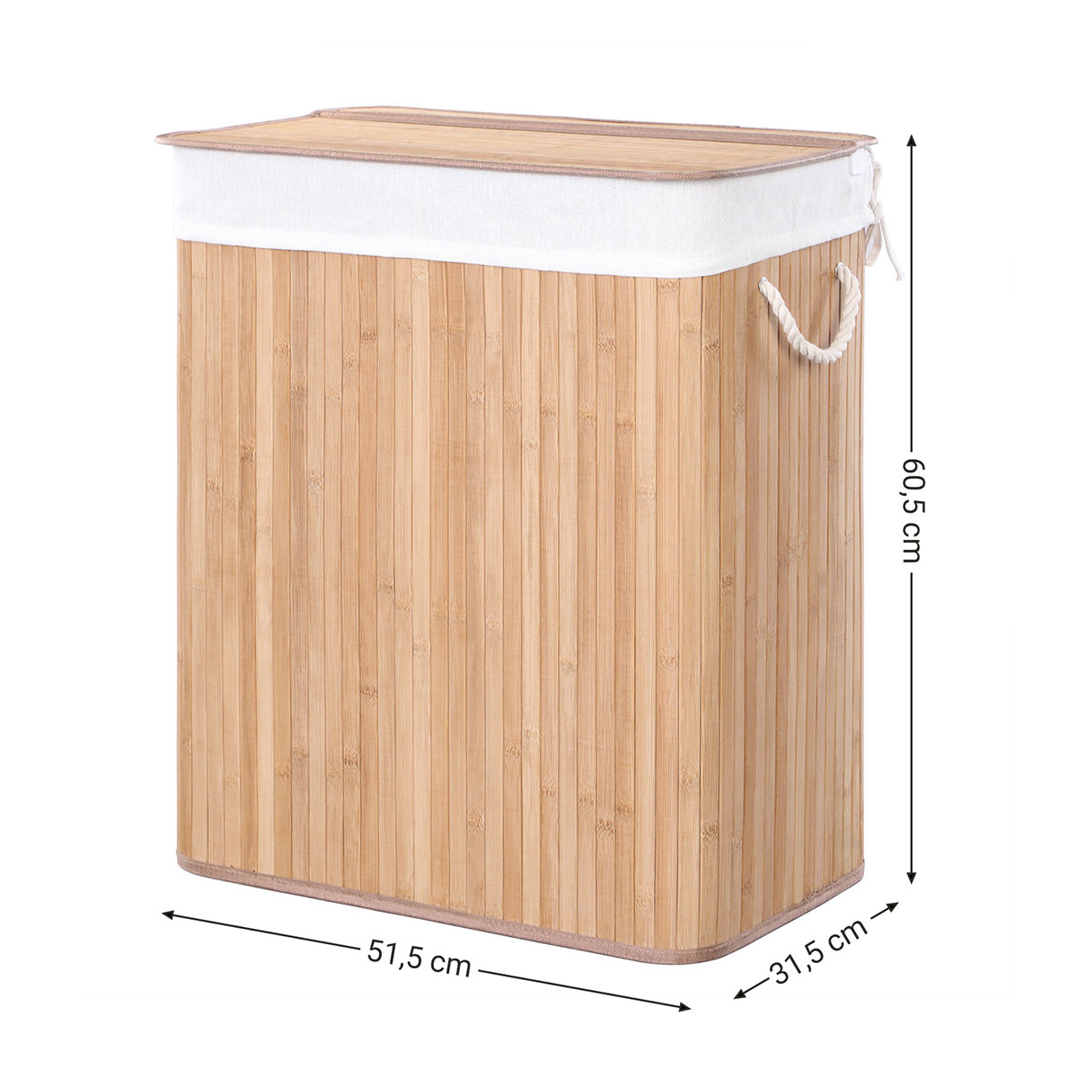 Καλάθι απλύτων ορθογώνιο από την εταιρεία Songmics. Είναι κατασκευασμένο από MDF και μοριοσανίδα σε μπεζ χρώμα. Διαθέτει πρακτικό καπάκι και χερούλια από σχοινί στα πλαϊνά για εύκολη μεταφορά. Εσωτερικά έχει σάκο από βαμβακερό ύφασμα ο οποίος αφαιρείται, για εύκολο καθάρισμα. Σας επιτρέπει να οργανώσετε τον χώρο σας και ταυτόχρονα να δώσετε μια μοντέρνα πινελιά. Μέγιστο βάρος αντοχής 25kg. *Το προϊόν έρχεται αμοντάριστο και συναρμολογείται βάσει οδηγιών.*