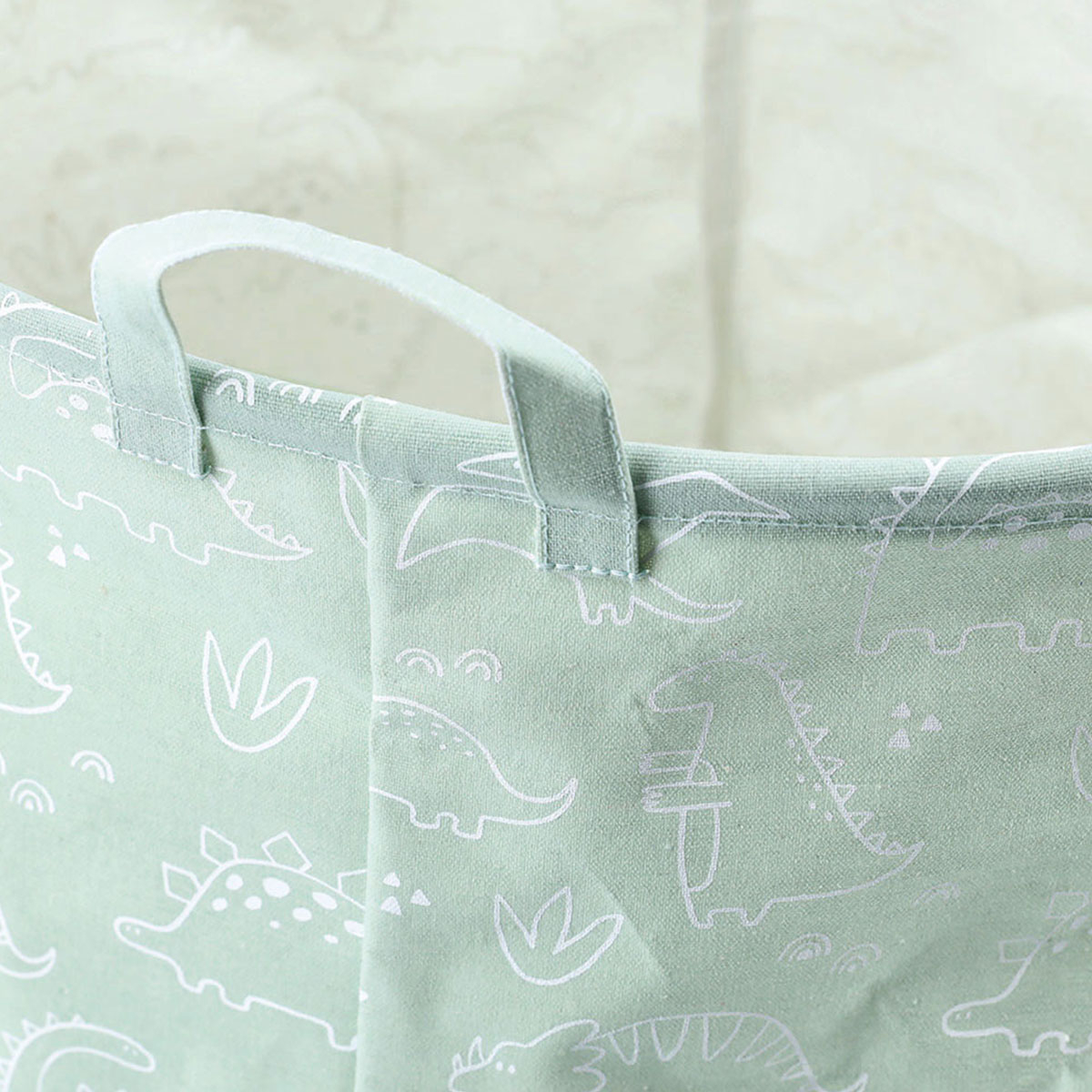 Καλάθι απλύτων-αποθήκευσης για το παιδικό ή βρεφικό δωμάτιο. Είναι κατασκευασμένο από ύφασμα σε βεραμάν χρώμα με λευκό σχέδιο δεινοσαυράκια. Μπορεί να τοποθετηθεί στο παιδικό δωμάτιο για την αποθήκευση μικροπραγμάτων ή για να βάζετε τα άπλυτα του μικρού σας. Διαθέτει λαβές για εύκολη μεταφορά. Δώστε λύση στο πρόβλημα της τακτοποίησης, αναβαθμίζοντας αισθητικά τον χώρο. Συνδυάστε το με τα υπόλοιπα είδη του ίδιου σετ για ένα ολοκληρωμένο αποτέλεσμα στο χώρο σας.