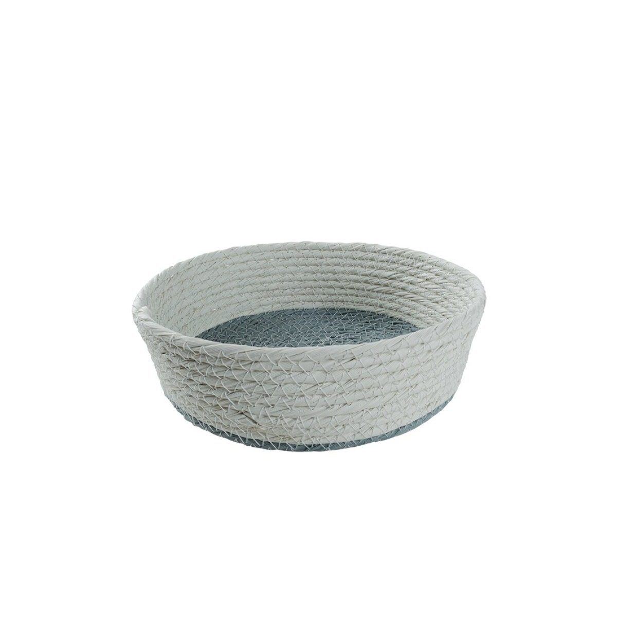 Καλάθι από την εταιρεία Espiel σε λευκό-γαλάζιο χρώμα με μοντέρνο σχεδιασμό. Είναι κατασκευασμένο από ψάθα. Ιδανικό για να κρατήσετε οργανωμένα τα αντικείμενά σας. Θα σας φανεί πρακτικό και απαραίτητο στο χωλ για τα κλειδιά και την αλληλογραφία, στο δωμάτιο για τα κοσμήματα, στο μπάνιο για τις χτένες, ή για οποιαδήποτε άλλη χρήση επιθυμείτε.