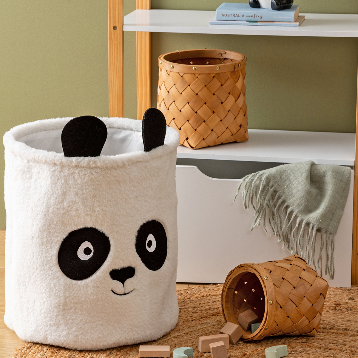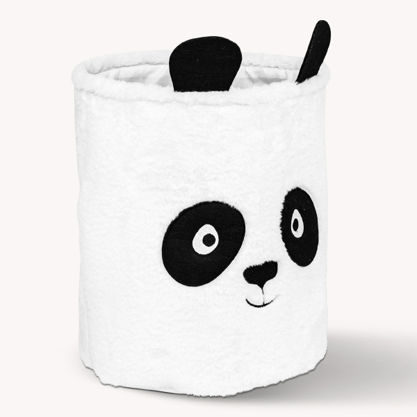 Καλάθι σε λευκό και μαύρο χρώμα με σχέδιο πάντα. Είναι κατασκευασμένο από γούνινο ύφασμα με σύνθεση 100% polyester. Ιδανικό για να αποθηκεύσετε διάφορα αντικείμενα όπως παιχνίδια, ρούχα ή άλλα αντικείμενα και παράλληλα να διακοσμήσετε το δωμάτιο του παιδιού σας. Τοποθετήστε το σε κάποιο ντουλάπι, ράφι ή σε κάποια γωνιά του δωματίου. Κατάλληλο για να κρατήσει τακτοποιημένο το παιδικό ή βρεφικό δωμάτιο. Συνδυάστε το με τα υπόλοιπα προϊόντα της ίδιας συλλογής για ένα ολοκληρωμένο αποτέλεσμα στο χώρο σας.