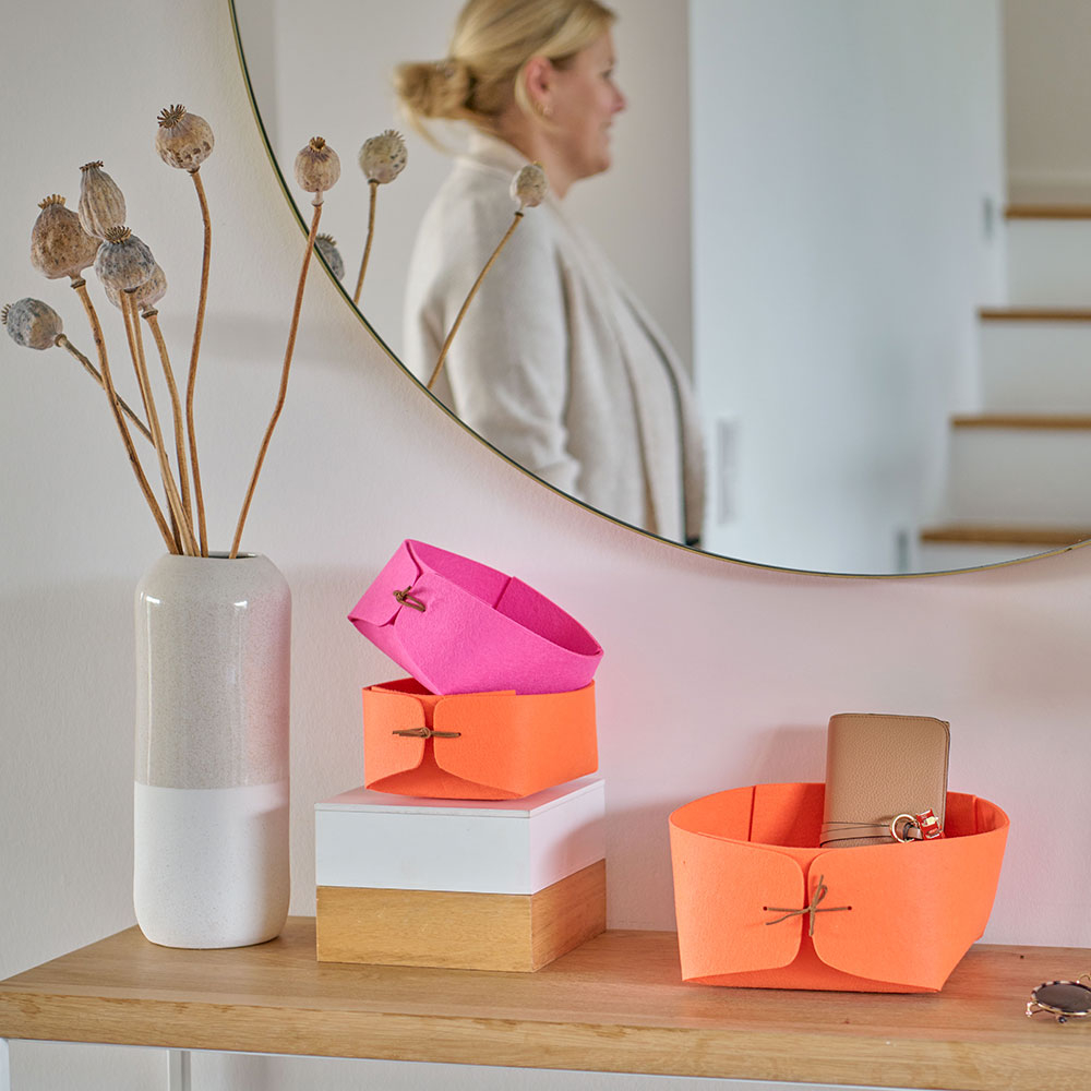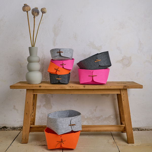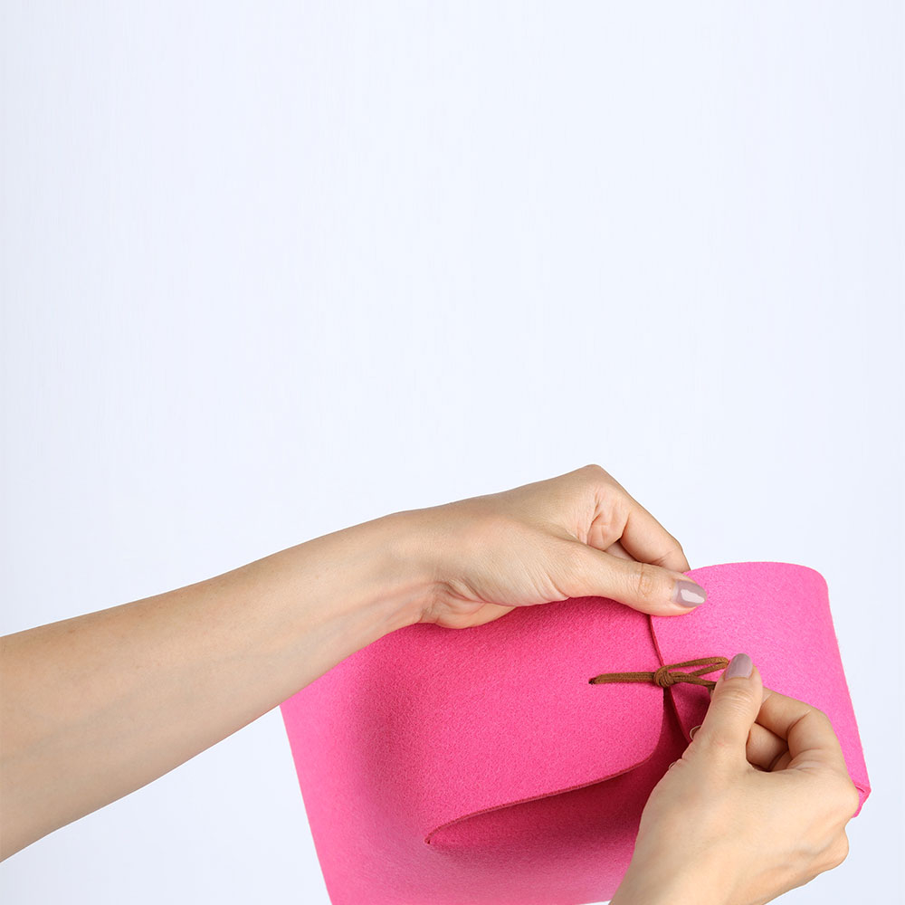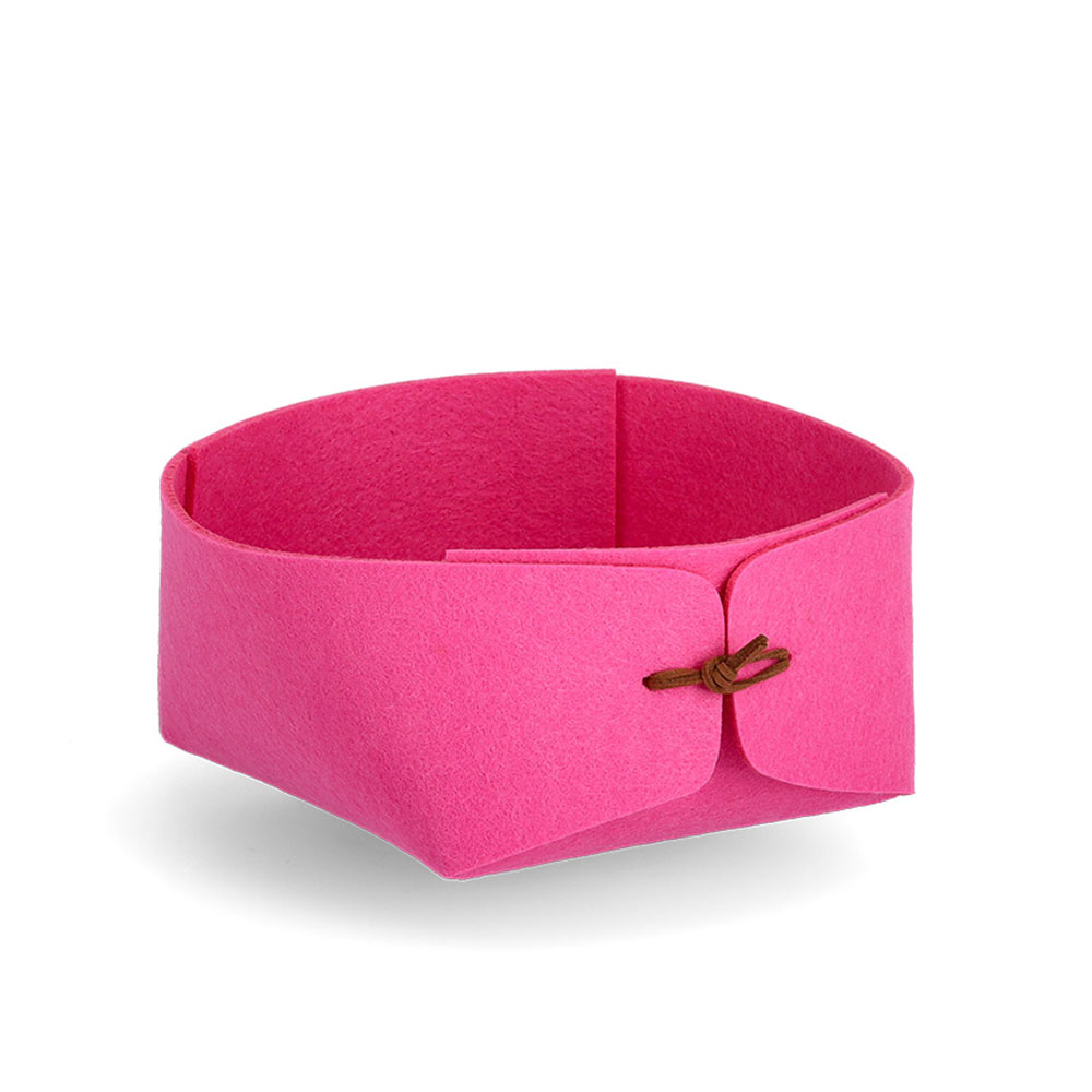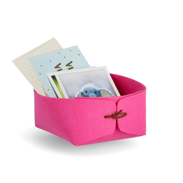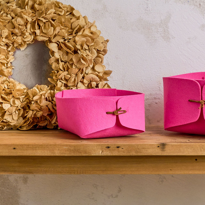 Καλάθι αποθήκευσης σε φούξια χρώμα, κατασκευασμένο από τσόχα. Ιδανικό για το μπάνιο, το υπνοδωμάτιο ή την τραπεζαρία σαν διακοσμητικό ή σαν αποθηκευτικό χώρο για μικροπράγματα. Συνδυάστε το με τα υπόλοιπα είδη του ίδιου σετ για ένα ολοκληρωμένο αποτέλεσμα στο χώρο σας.