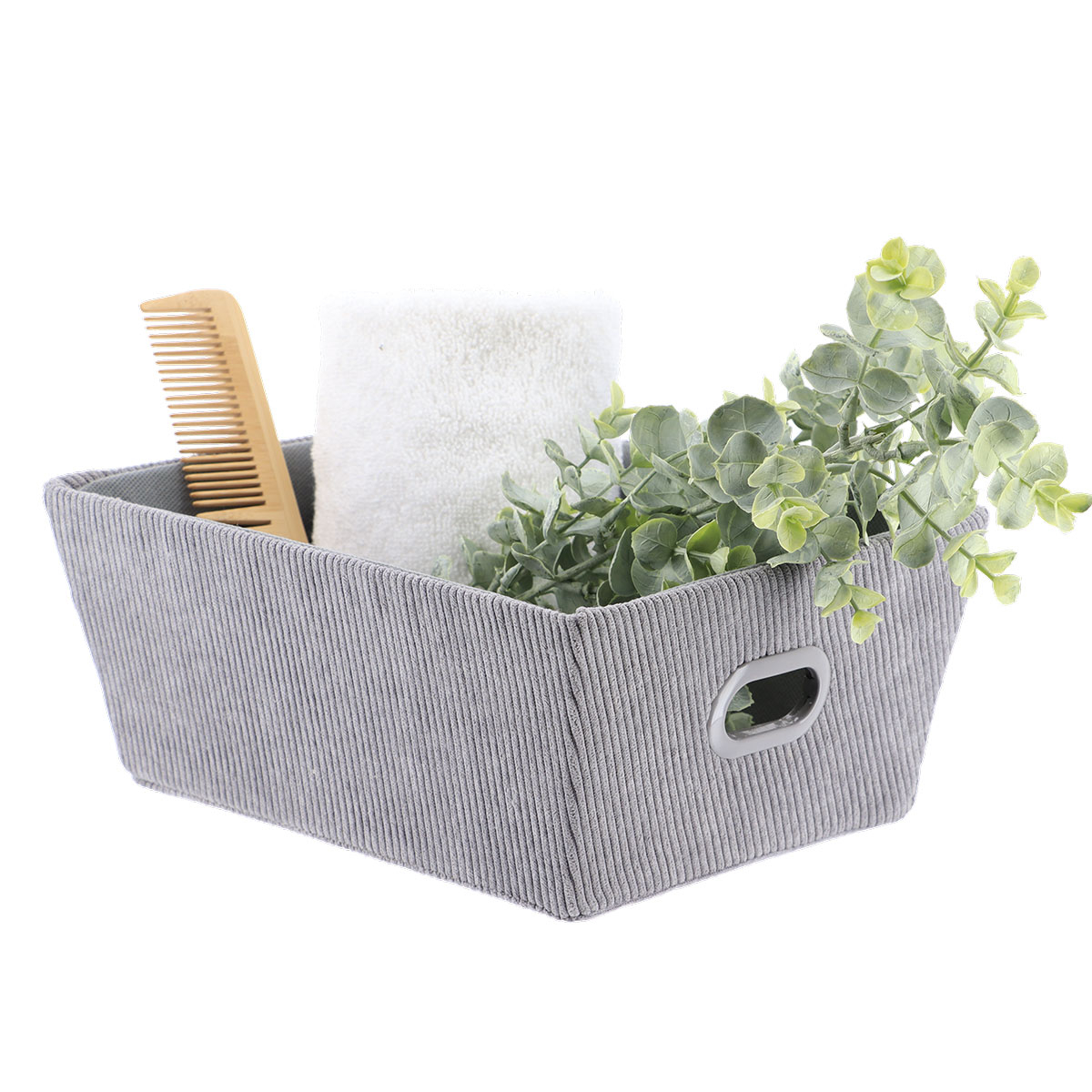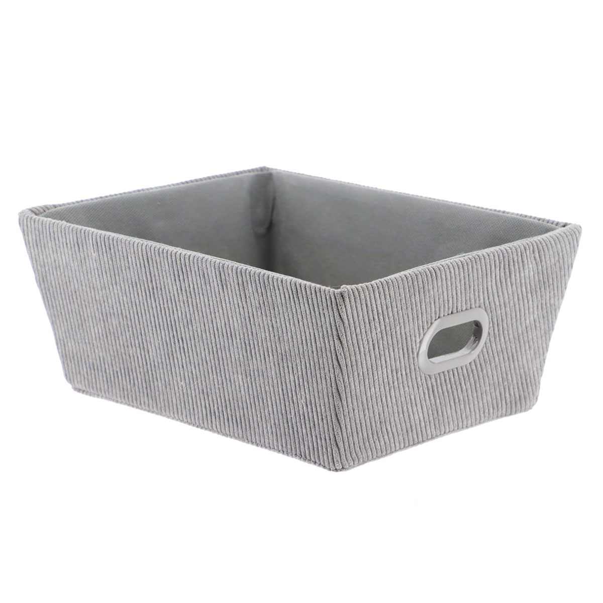 Καλάθι αποθήκευσης σε γκρι χρώμα. Ο σκελετός είναι κατασκευασμένος από μεταλλικό υλικό και έχει επένδυση από πολυεστερικό ύφασμα. Διαθέτει λαβές για εύκολη μεταφορά. Ιδανικά καλάθι για το μπάνιο, το υπνοδωμάτιο ή οποιοδήποτε άλλο χώρο του σπιτιού έχει μικροπράγματα για τακτοποίηση. Συνδυάστε το με τα υπόλοιπα είδη της ίδιας σειράς για ένα ολοκληρωμένο αποτέλεσμα.