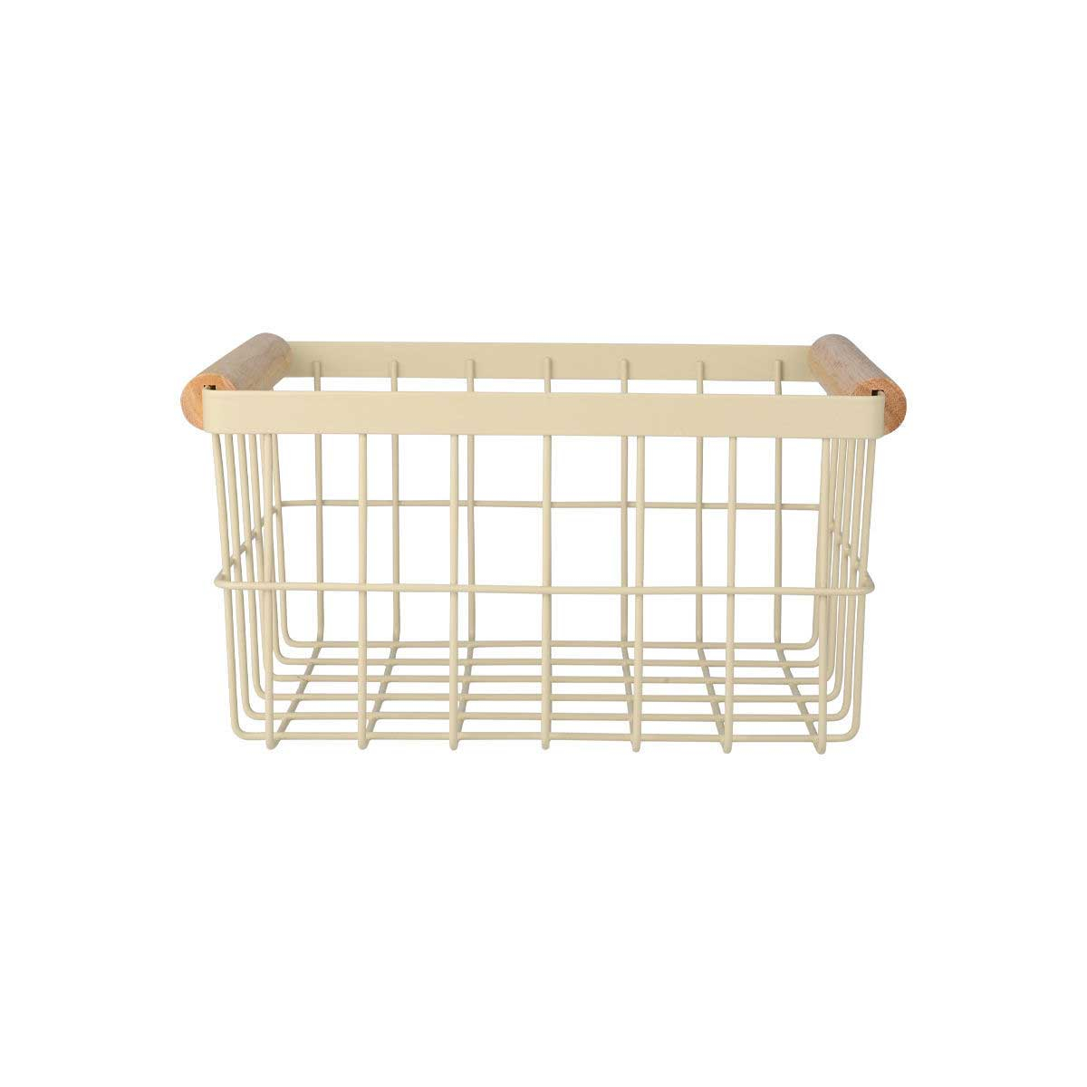Καλάθι αποθήκευσης από την εταιρεία εstia σε μπεζ χρώμα. Είναι κατασκευασμένο από μεταλλικό υλικό. Διαθέτει ξύλινα χερούλια από ξύλο ακακίας. Ιδανικό για να κρατήσει οργανωμένα τα μικροαντικείμενα και ότι άλλο φανταστείτε. Συνδυάστε το με τα υπόλοιπα είδη της σειράς για ένα ολοκληρωμένο αποτέλεσμα.