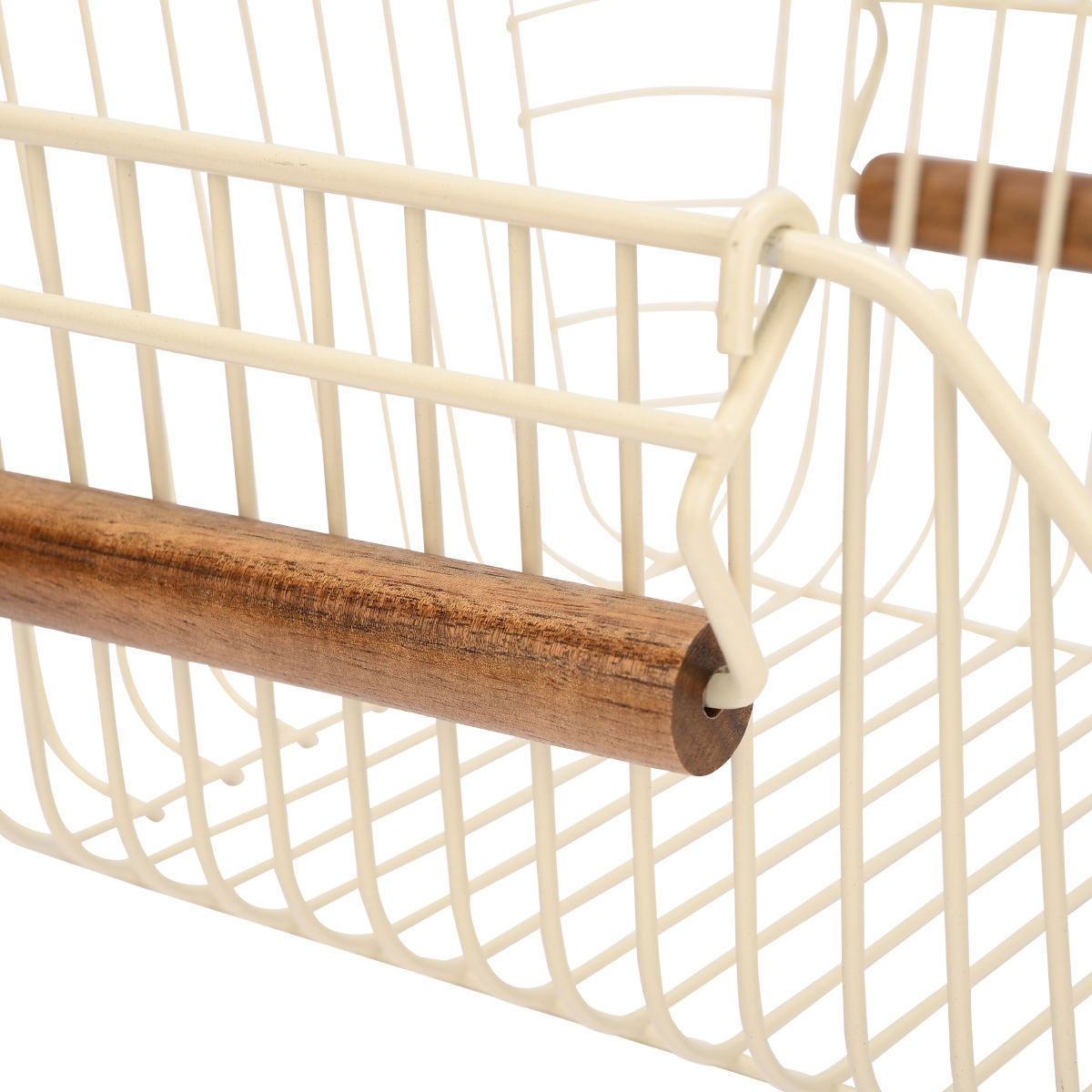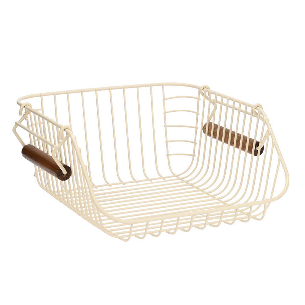Καλάθι αποθήκευσης από την εταιρεία εstia. Είναι κατασκευασμένο από μεταλλικό υλικό σε ιβουάρ χρώμα. Διαθέτει λαβές από ξύλο ακακίας σε φυσική απόχρωση για εύκολη μεταφορά. Είναι στοιβαζόμενο με προϊόντα του ίδιου είδους για εξοικονόμηση χώρου. Ιδανικό για να κρατήσει οργανωμένα τα μικροαντικείμενα σε οποιοδήποτε χώρο του σπιτιού θέλετε ακόμα και στο γραφείο. Συνδυάστε το με τα υπόλοιπα είδη της ίδιας συλλογής για ένα ολοκληρωμένο αποτέλεσμα στο χώρο σας.