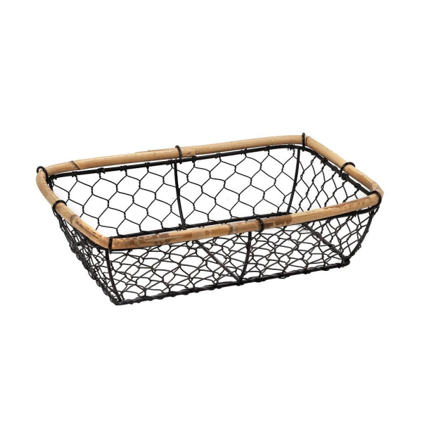Καλάθι αποθήκευσης από την εταιρεία Espiel. Είναι μεταλλικό σε μαύρο χρώμα με περιμετρικό ξύλο στο πάνω μέρος. Είναι ιδανικό για αποθήκευση ή τακτοποίηση αντικειμένων.